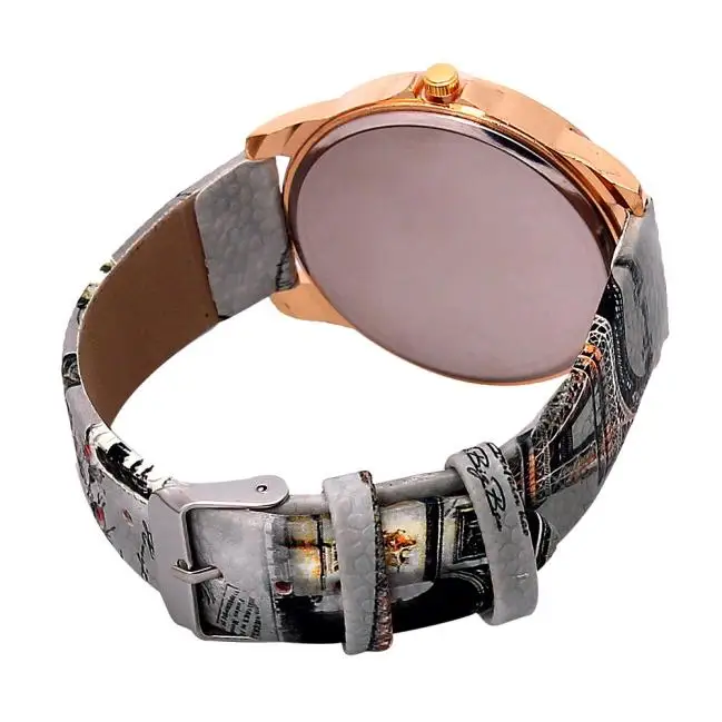 Кожаный ремешок с изображением башни, аналоговые кварцевые наручные часы Vogue