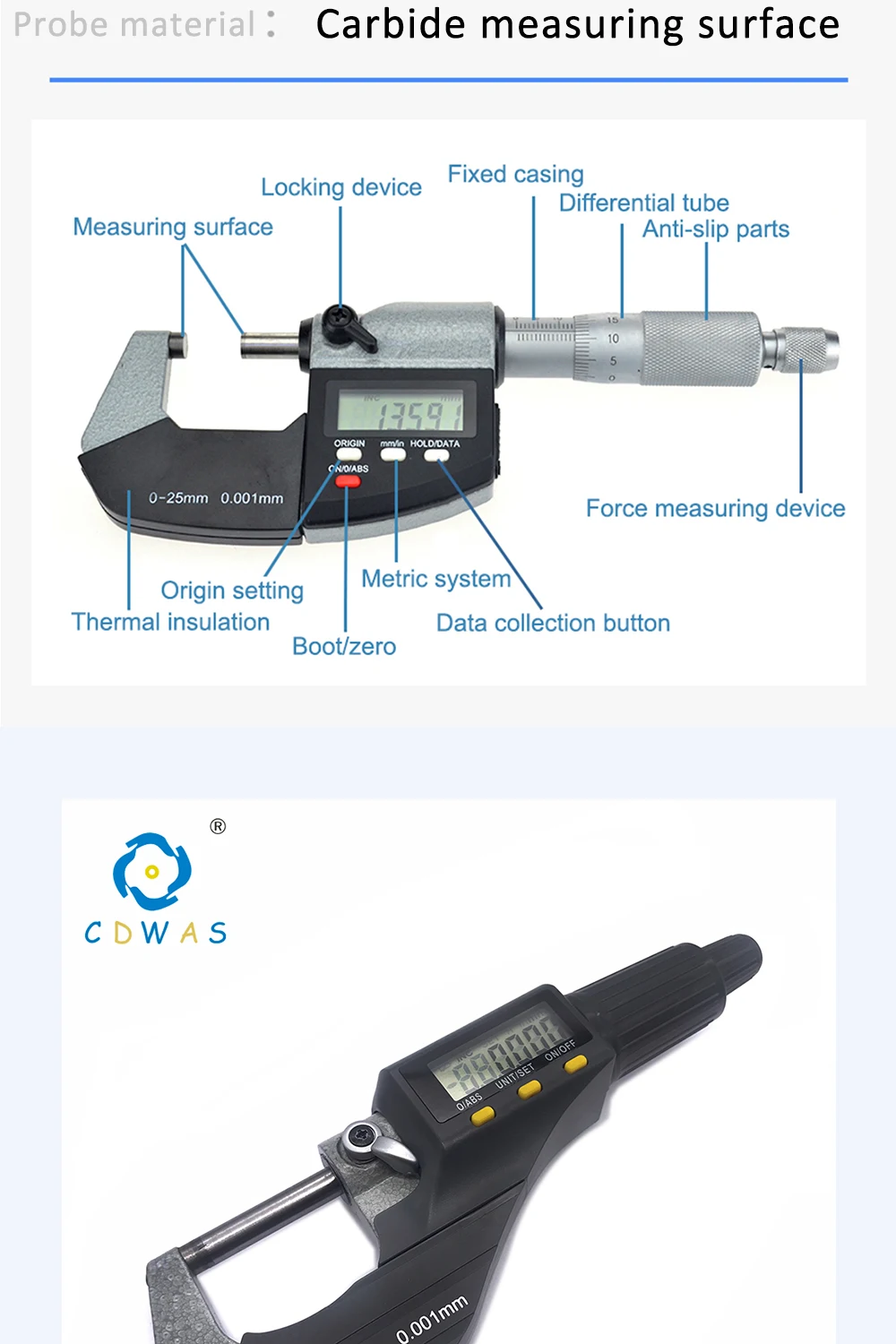 Электронный микрометр 0-25 мм 25-50 мм 50-75 мм 75-100 мм 0,001 мм, цифровой микрометр, измеритель, микрометр, измерительные инструменты