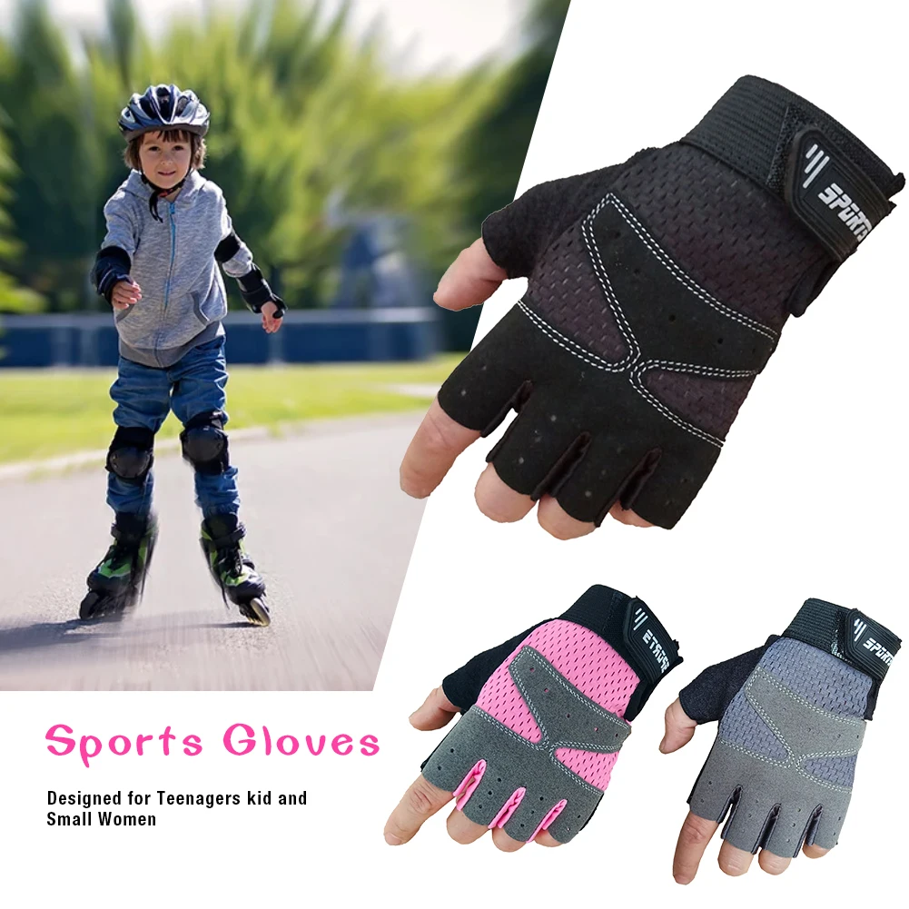 Велосипедные перчатки, спортивные перчатки для подростков, велосипедные защитные перчатки для тренажерного зала, тяжелой атлетики, бега, для детей и маленьких женщин