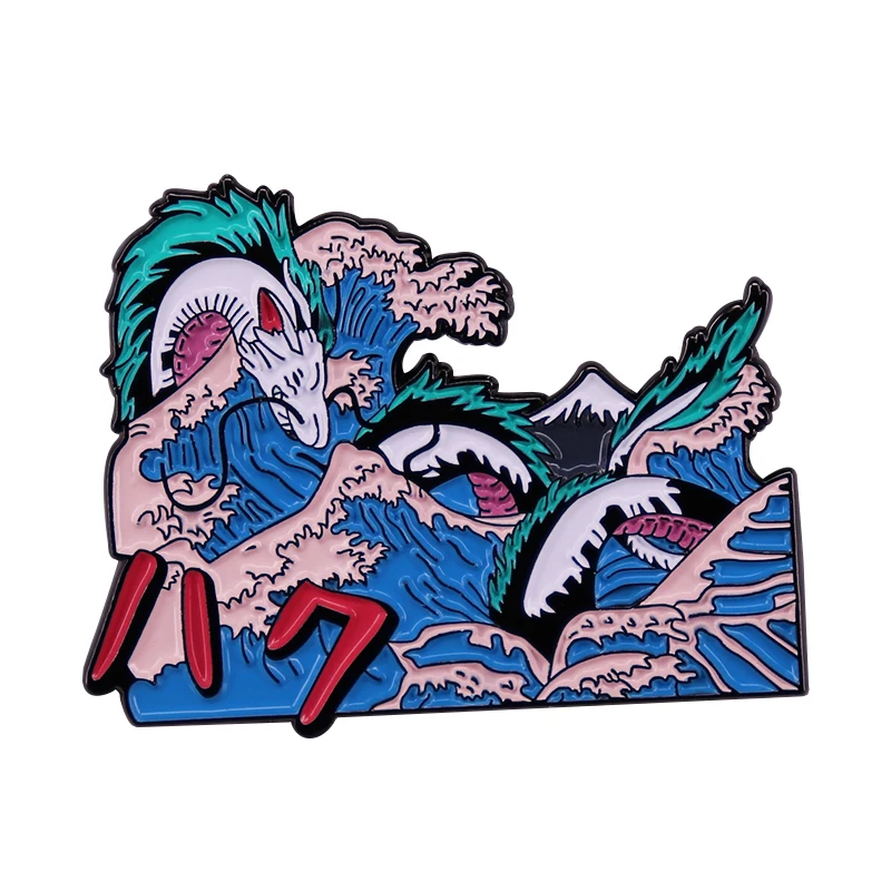 Значок из японского искусства с изображением дракона Хаку из аниме Хокусай
