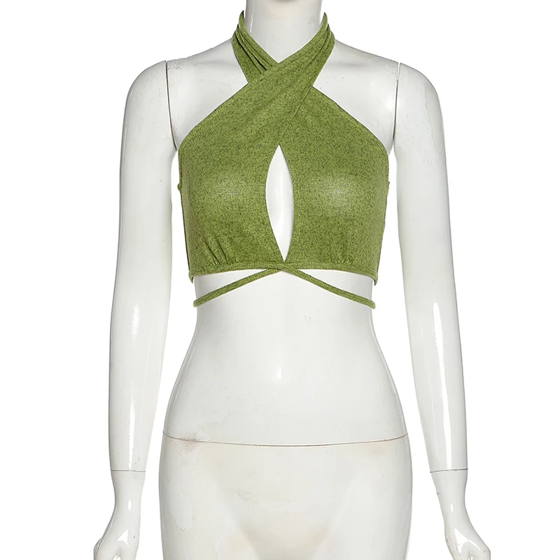 Женский топ на бретельках Y2K, Летний зеленый топ с открытой спиной...