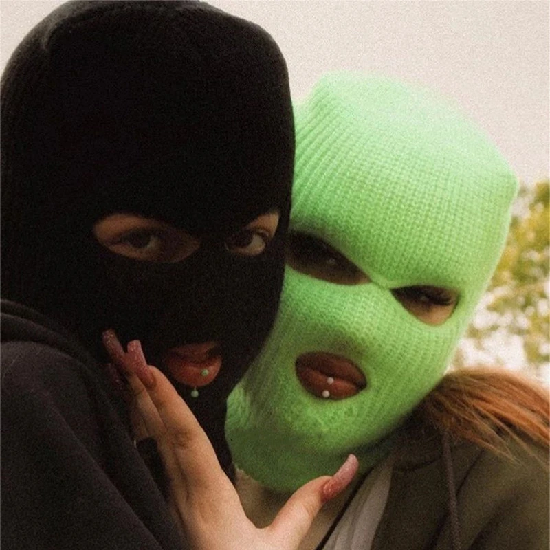 Трикотажная Балаклава с 3 отверстиями, Зимняя Теплая Лыжная Балаклава для езды на велосипеде, однотонная неоновая шапка для косплея на Хэллоуинвечеринку, Кепка