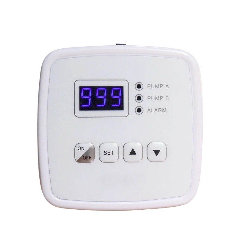 Двойной насос 20 Таз: 1 двойной контроллер насоса, водопроводная труба 15 м, 20 тройных труб, 20 капельных стрел, 2 потайных головки, Кабель-адаптер 1,2 м, 1 USB-кабель, 1 отвертка, 1 Инструкция по эксплуатации