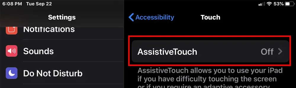 A: откройте настройки, нажмите «Доступность»-«Прикосновение», откройте «AssistiveTouch».