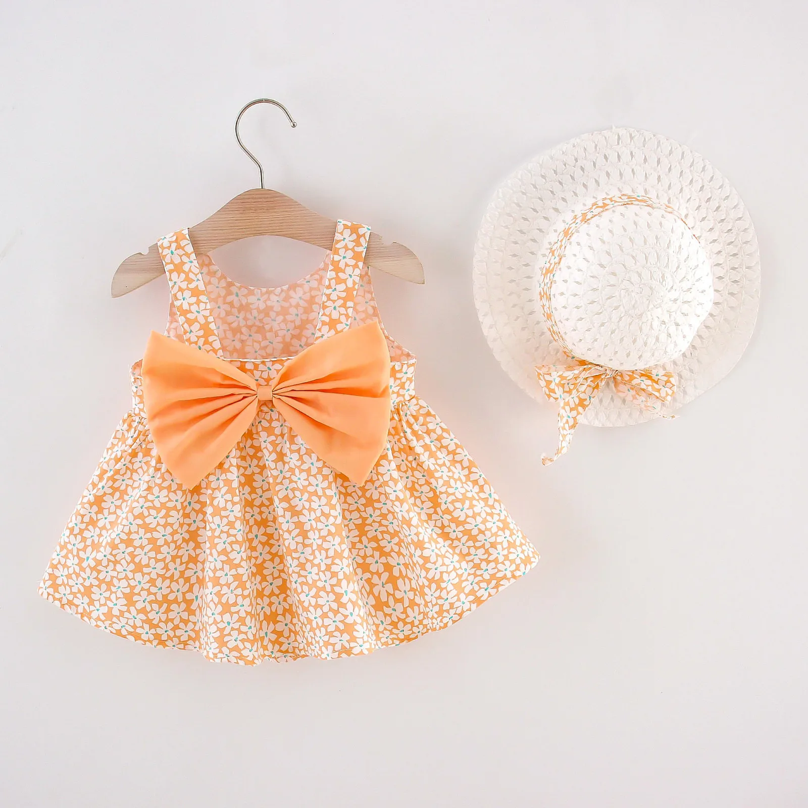 Платье принцессы с цветочным принтом и подтяжками для маленьких девочек; Одежда с шапкой