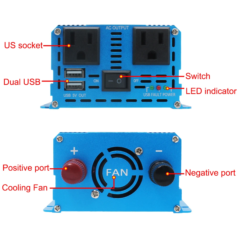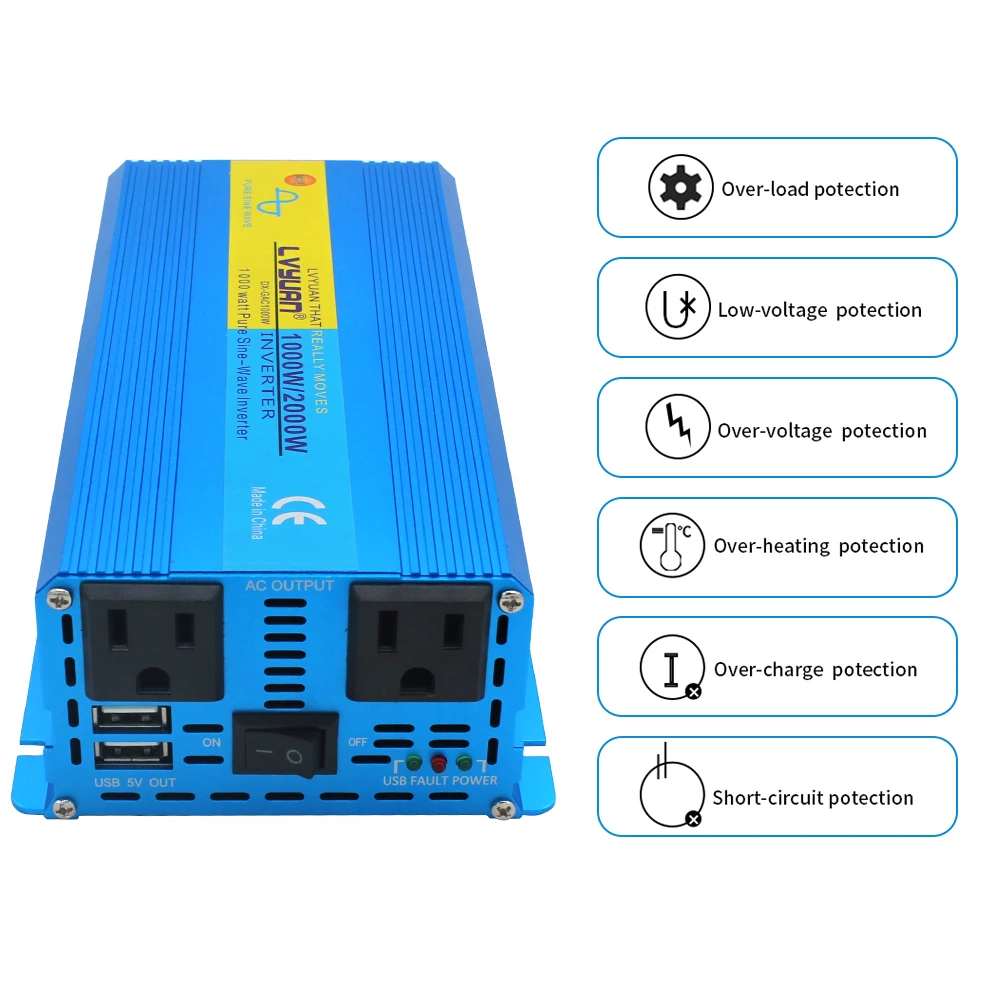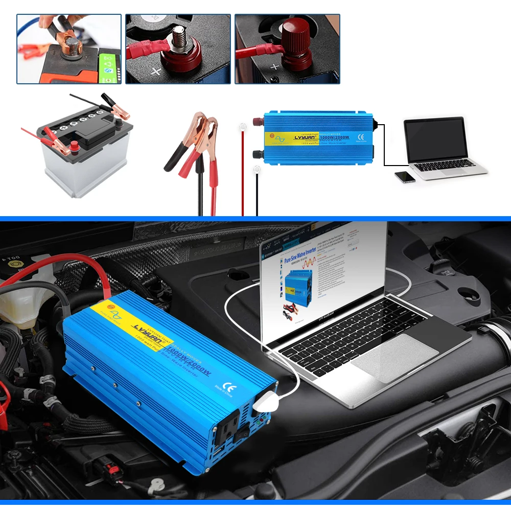 Автомобильный инвертор, немодулированный синусоидальный сигнал, 2000 Вт, 12 В постоянного тока в 110 В переменного тока, адаптер для зарядки, солнечный трансформатор, Преобразователь мощности, 2 USB-выхода