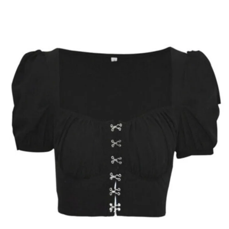 Женская футболка с квадратным вырезом, короткий топ с пышными рукав...