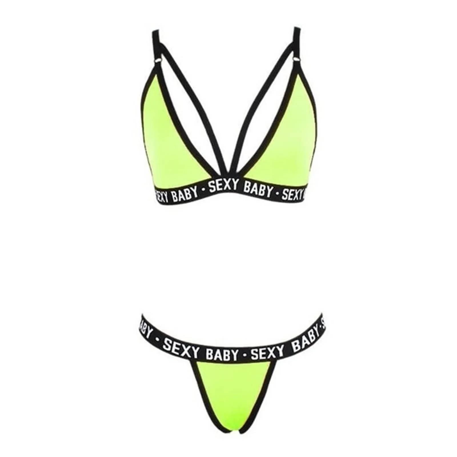 Женское однотонное пикантное нижнее белье с надписью, костюм, нижне...