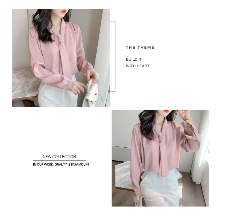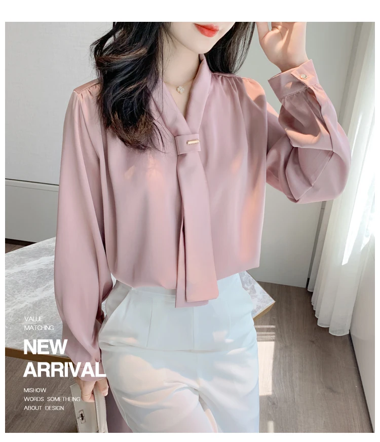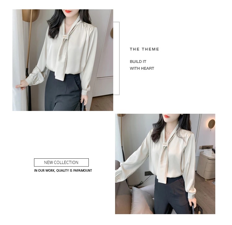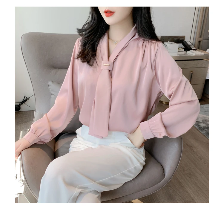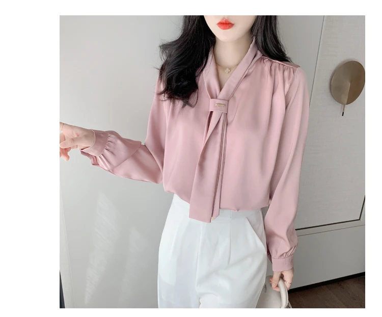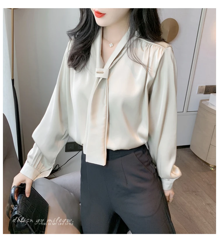 Женская атласная рубашка, Осенние шифоновые Женские топы и блузки, ...