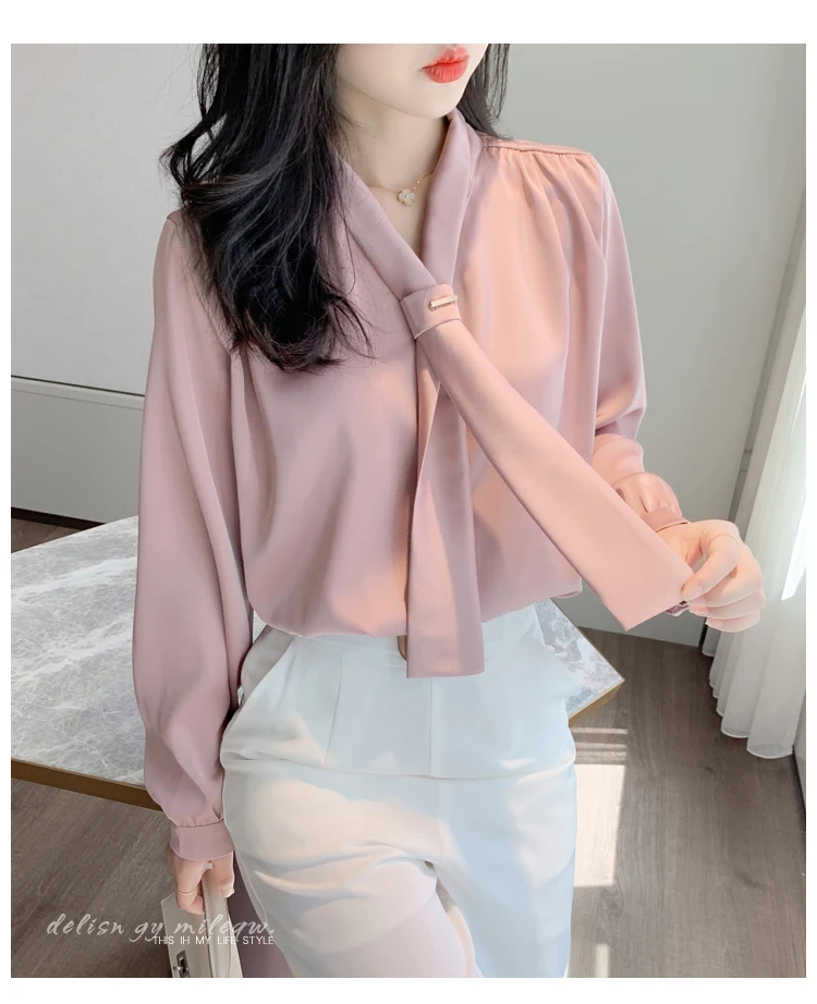 Осенняя шифоновая рубашка в офисном стиле, женская рубашка с длинны...