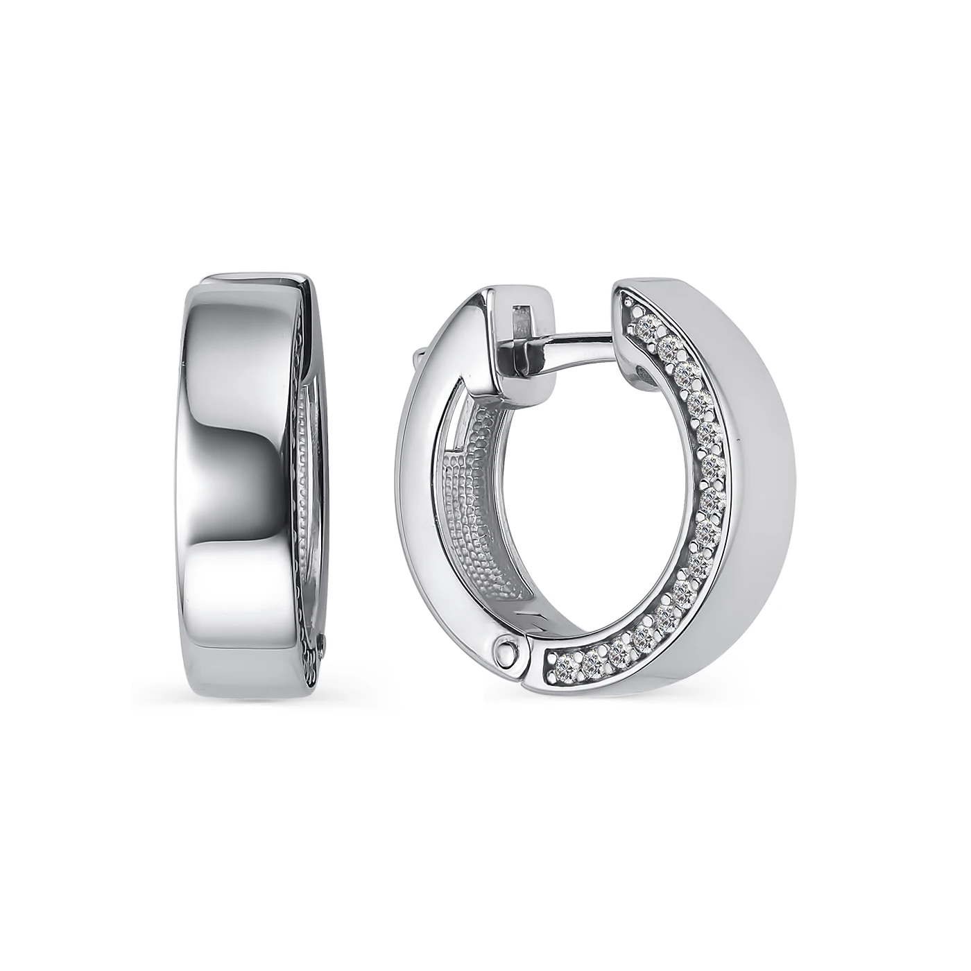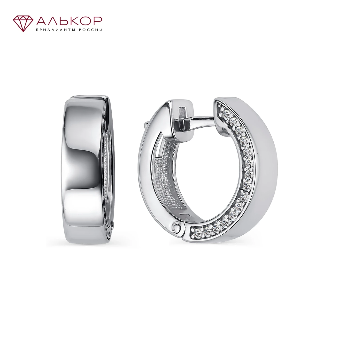 Женские серьги конго (кольца) АЛЬКОР из родированного серебра 925 пробы с 60 фианитами. Ширина изделия: 4,3 мм. Средний вес: 5,46 гр.