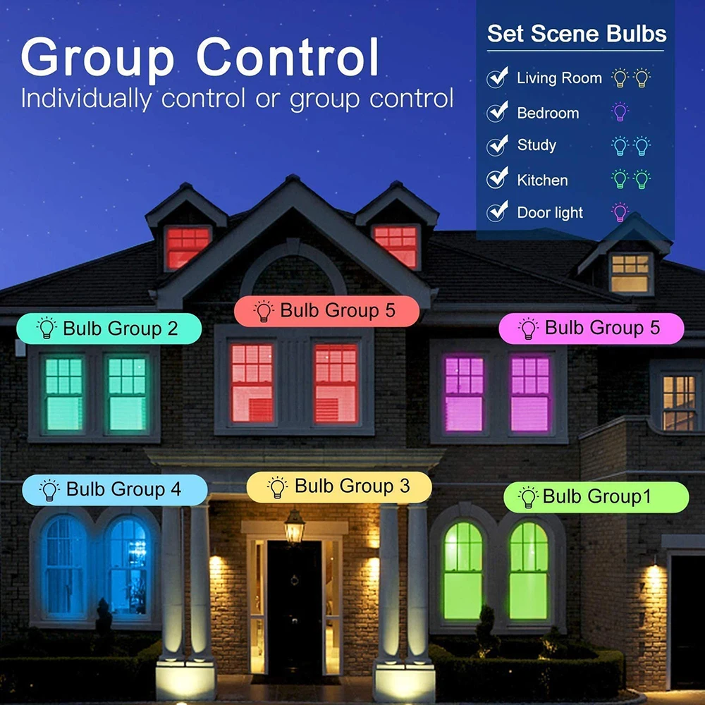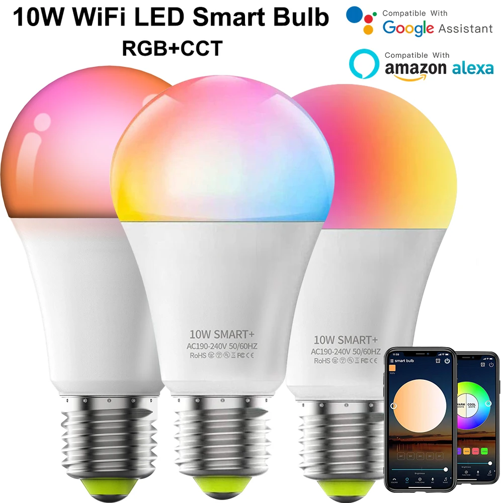 Умная лампа E27 с Wi-Fi, светодиодный светильник с изменением цвета, работает с AlexaGoogle Home, функция таймера, волшебная лампа, 15 Вт