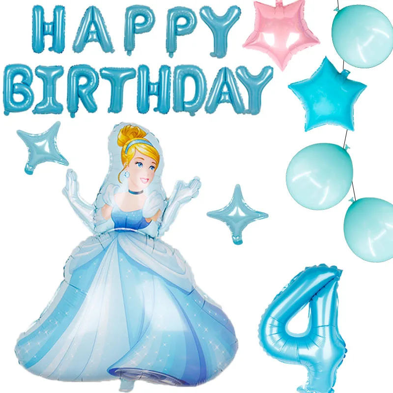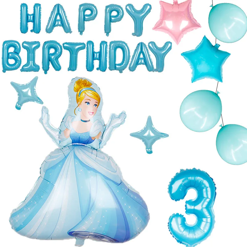 1 комплект, 16 дюймов, конфетно-голубой шар из алюминиевой фольги, с надписью на день рождения, Золушка, гелиевые глобусы, вечерние украшения, детский душ