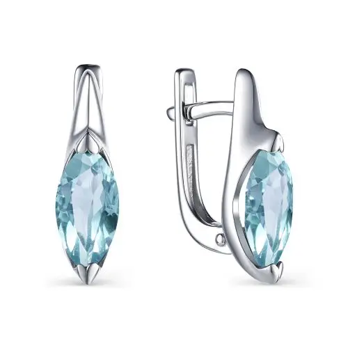 Женские серьги английский замок АЛЬКОР из родированного серебра 925 пробы с 2 топазами. Ширина изделия: 5 мм. Средний вес: 2,99 гр.