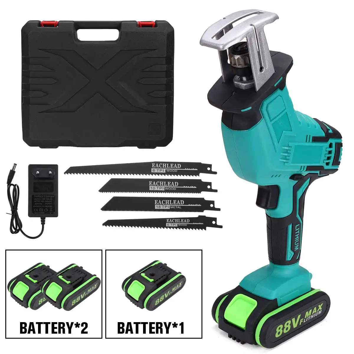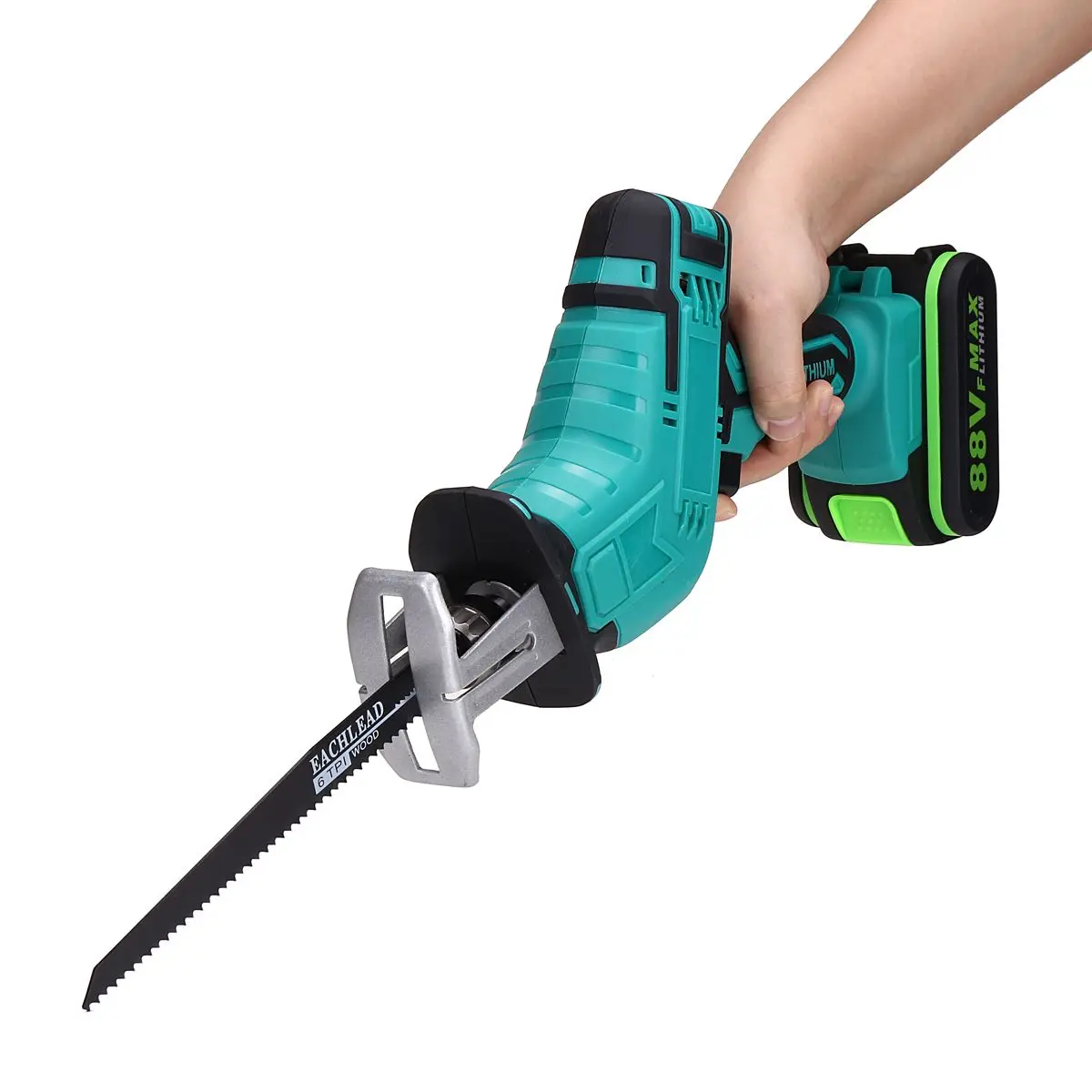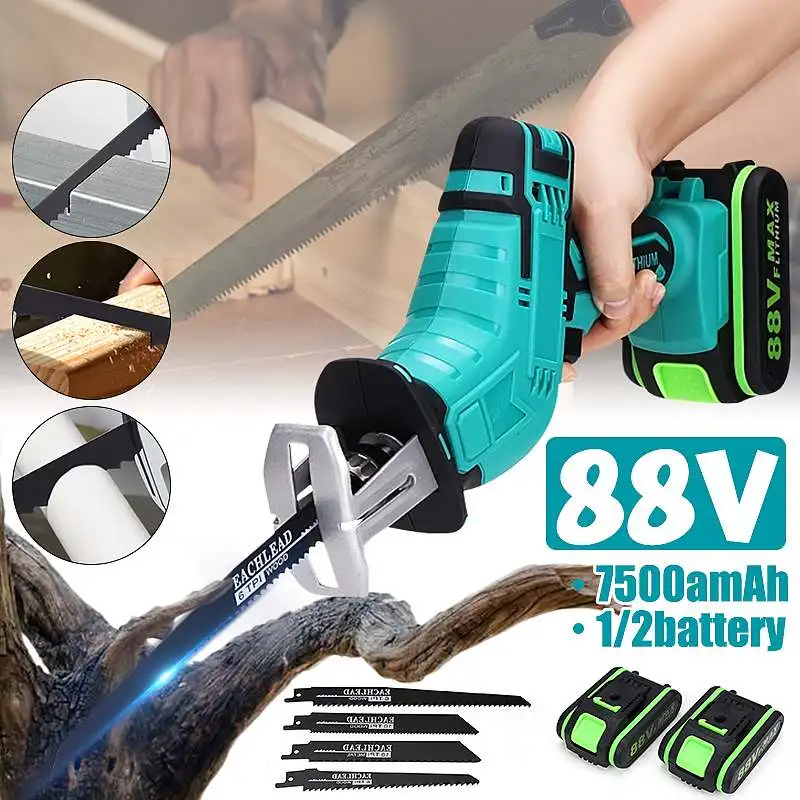 88V Беспроводная сабельная пила 4 лезвия режущий станокОсобенности:● Высокая мощность.● Электрический тормоз.● Переменная скорость.● Эргономичная ручка.● Триггер с рычагом блокировки.● Новый Разработанный механизм для более высокой эффективности.Характеристики:Тип: аккумуляторная беспроводная сабельная пила с 4 лезвиямиЦвет: синийВход: 100-240VACТип батареи: литий-ионный аккумуляторЕмкость аккумулятора: 7500 мАчНапряжение батареи: 88 вСкорость без нагрузки: 0-3000 об./мин.Длина хода: 10 ммГлубина резки металла: 2 ммГлубина резки по дереву: 0-300 ммГлубина резки пластика: 100 (мм)Тип зарядного устройства: штепсельная вилка европейского стандарта (Мы отправим адаптер в соответствии с вашей страной)Посылка включает в себя: (опционально)#11 x сабельная пилаАккумулятор-1 шт.4 пилыЗарядное устройство-1 шт.1 x Руководство пользователя1 x коробка#21 x сабельная пила2 батарейки4 пилыЗарядное устройство-1 шт.1 x Руководство пользователя1 x коробка