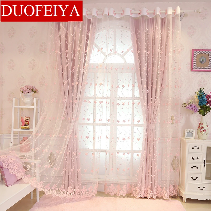 Корейский пасторальный розовый Блэкаут занавески с принцессой для девочек, детской, гостиной, спальни, окон, прозрачный тюль, романтический экран