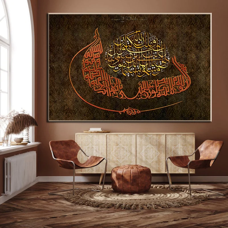 Ретро мусульманская каллиграфия настенная Картина на холсте стихи искусственная Арабская фотография и декор мечети