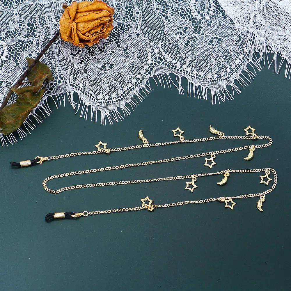 Цепочка для очков женская под розовое золото, ожерелье с маской для солнцезащитных очков, простой шнурок с ажурным узором, цепочка для очков, звезда, месяц, бижутерия, 2021