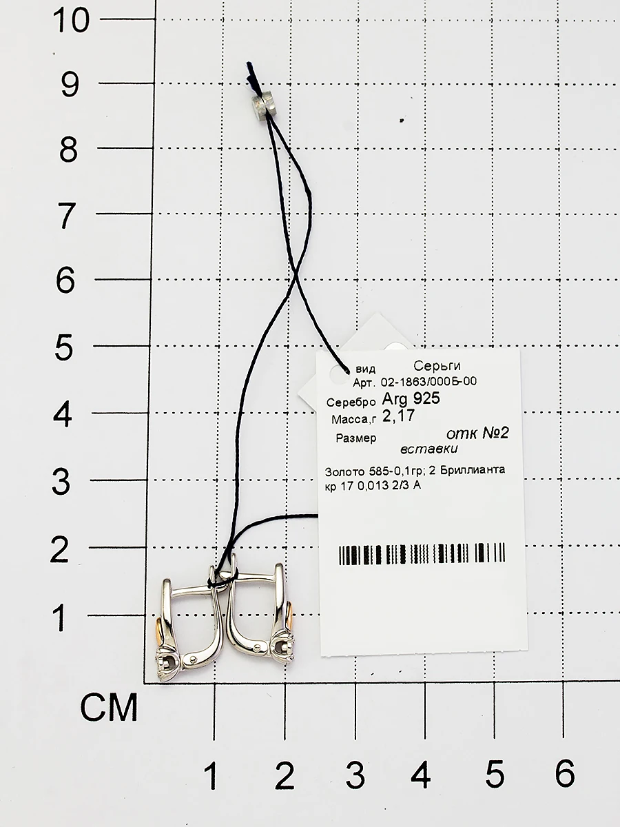 Женские серьги 2021 тренд из родированного серебра 925 пробы и золота 585 пробы с 2 бриллиантами.
