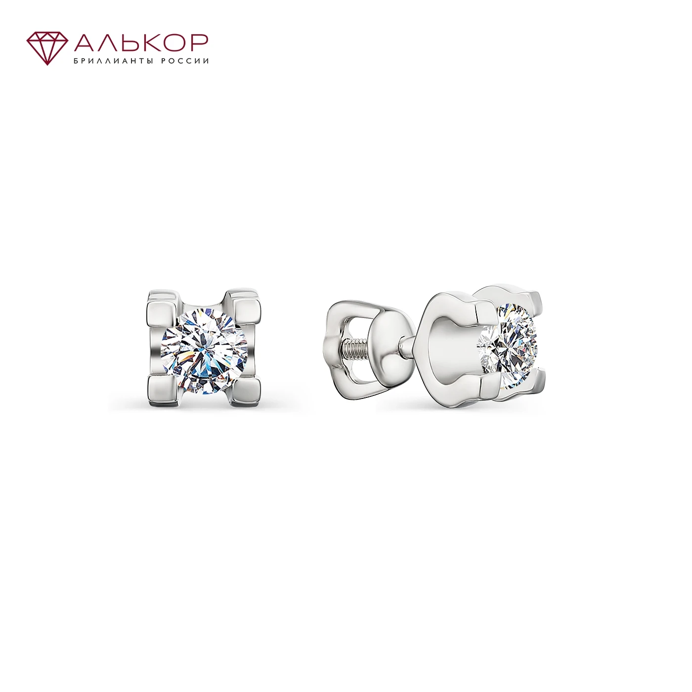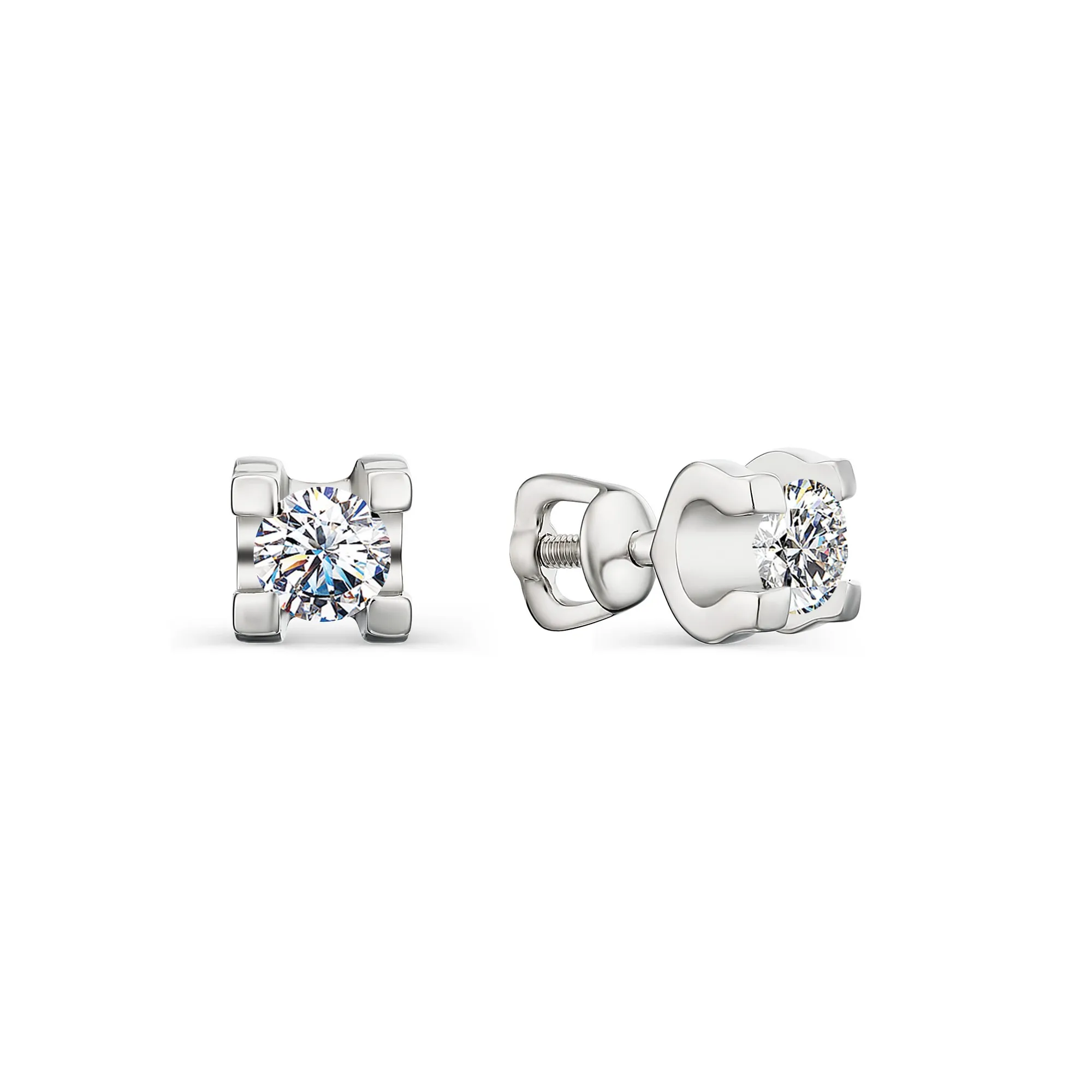 Женские серьги пусеты АЛЬКОР из родированного серебра 925 пробы с 2 фианитами. Средний вес: 1,95 гр.