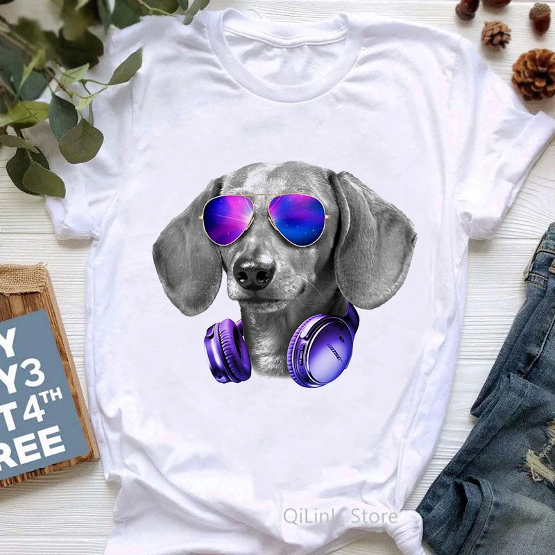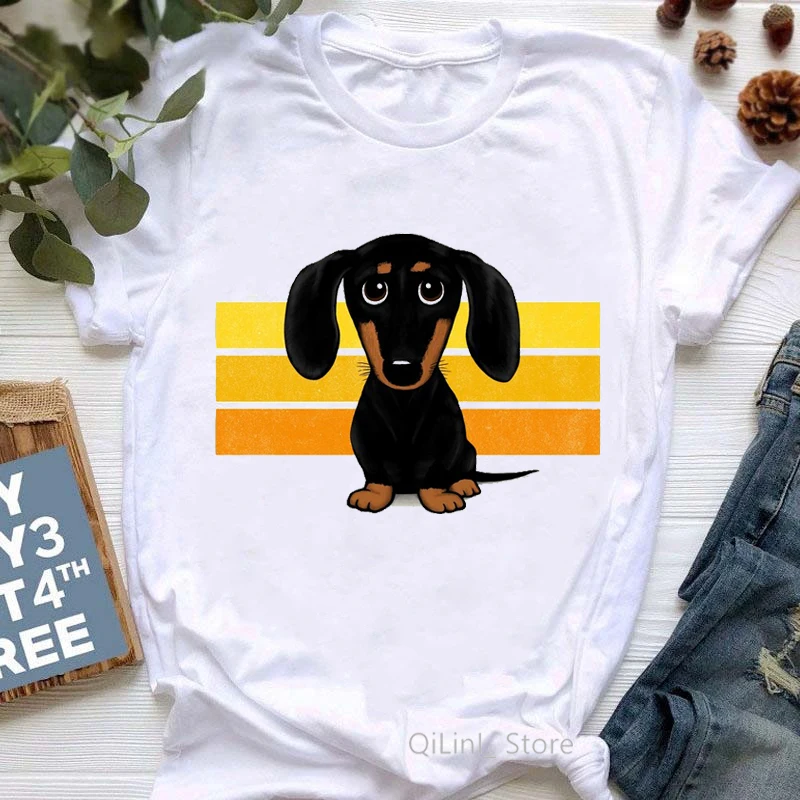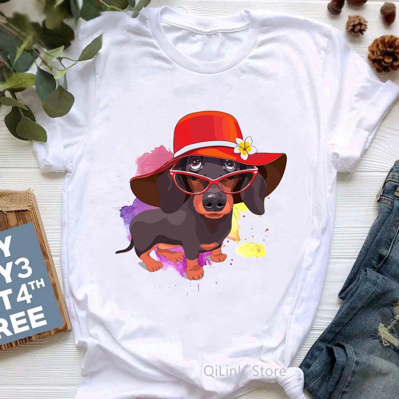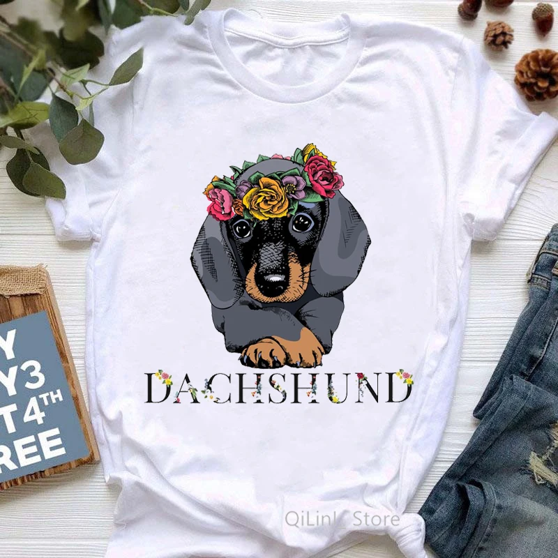 Милая футболка с цветочным принтом такса, женская летняя одежда, топ, Женская белая футболка, женская футболка с принтом собаки, подарок на день рождения, футболки, футболки