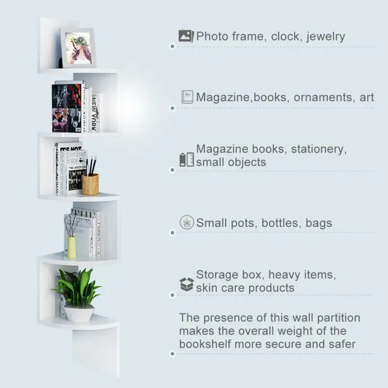 1. На каждом конце есть место, чтобы зафиксировать его на стене, в котором мы можем положить книги, DVD, небольшие украшения и т. д.;