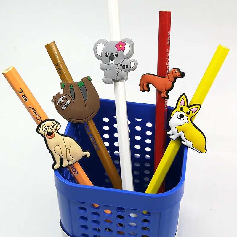100 шт. Смешанные случайные милые карандаши из ПВХ, топперы для ручек, соломенный Топпер, шапка для ручек для студентов, канцелярские принадлежности для школы и офиса, подарок для детей