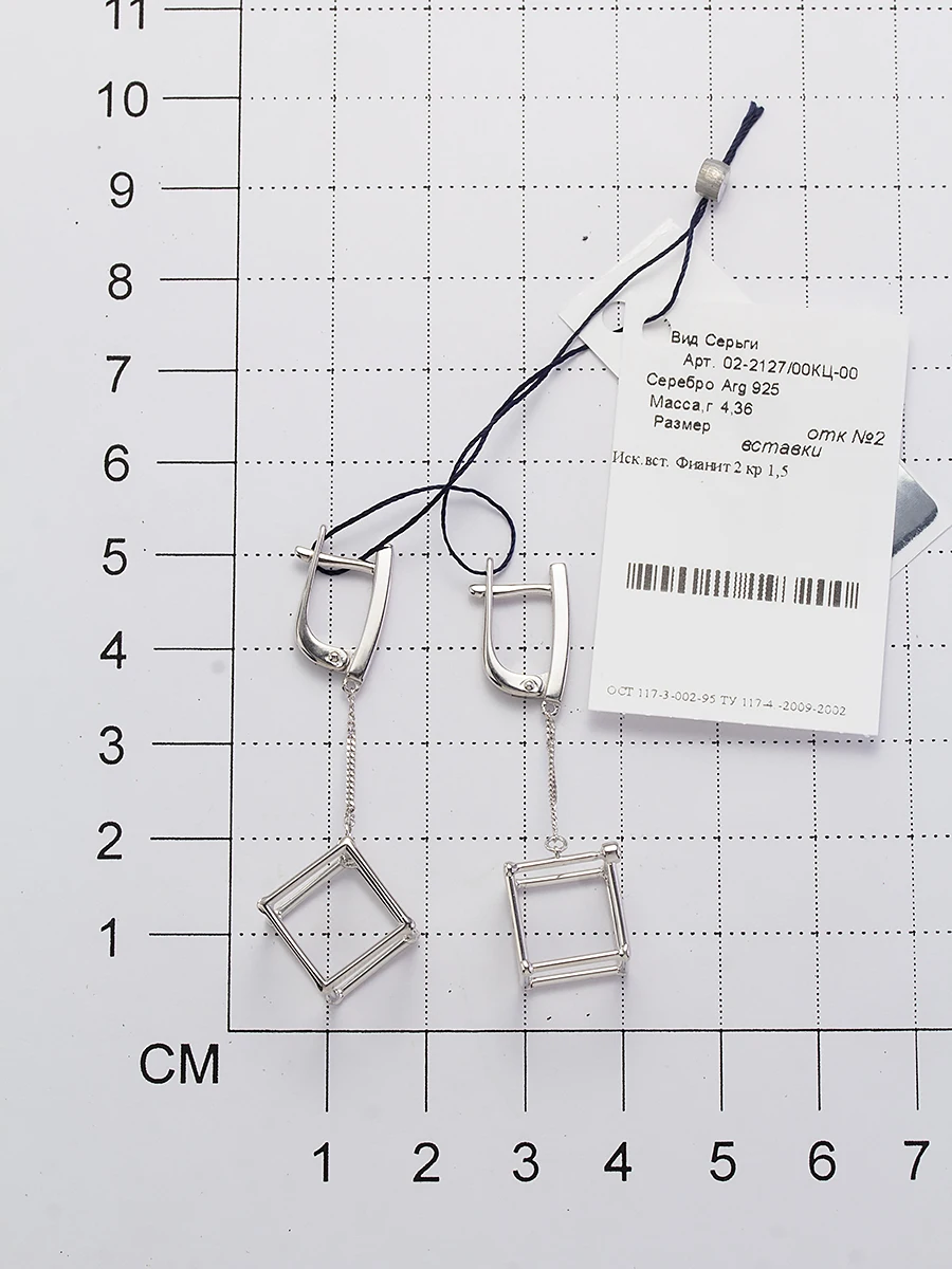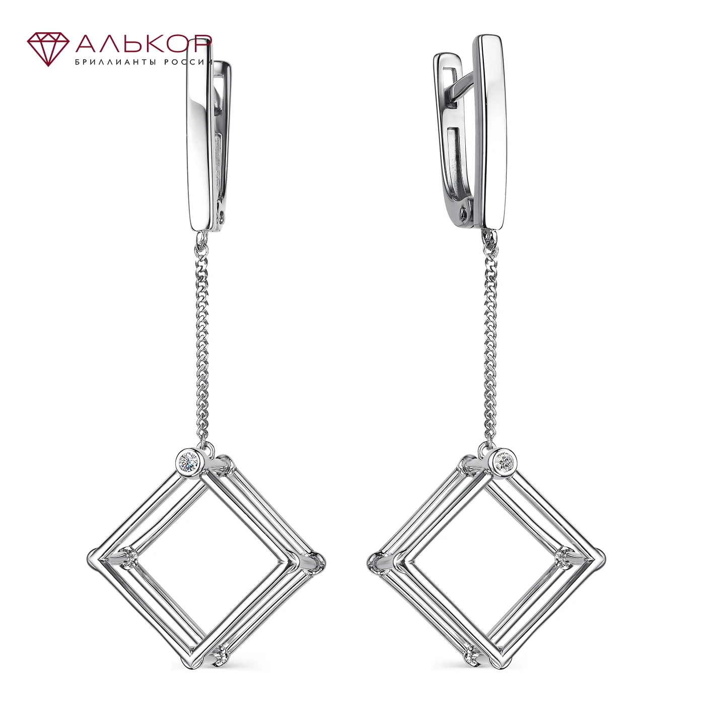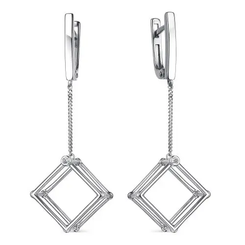 Женские серьги длинные АЛЬКОР из родированного серебра 925 пробы с 2 фианитами. Ширина изделия: 15,3 мм. Средний вес: 4,42 гр.