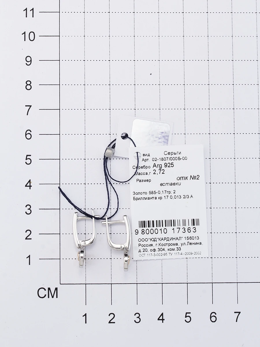 Серьги из серебра 925 с покрытием из родия, вставка: фианит. Беспла...