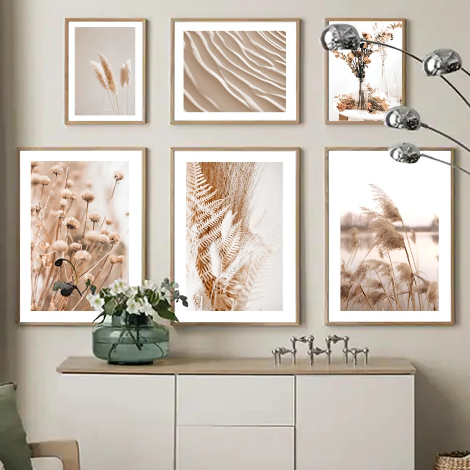 Настенный художественный принт, холст, картина, бежевый язычок, Одуванчик, сушеные цветы, трава, пустыня, скандинавский постер, настенные картины для декора гостиной