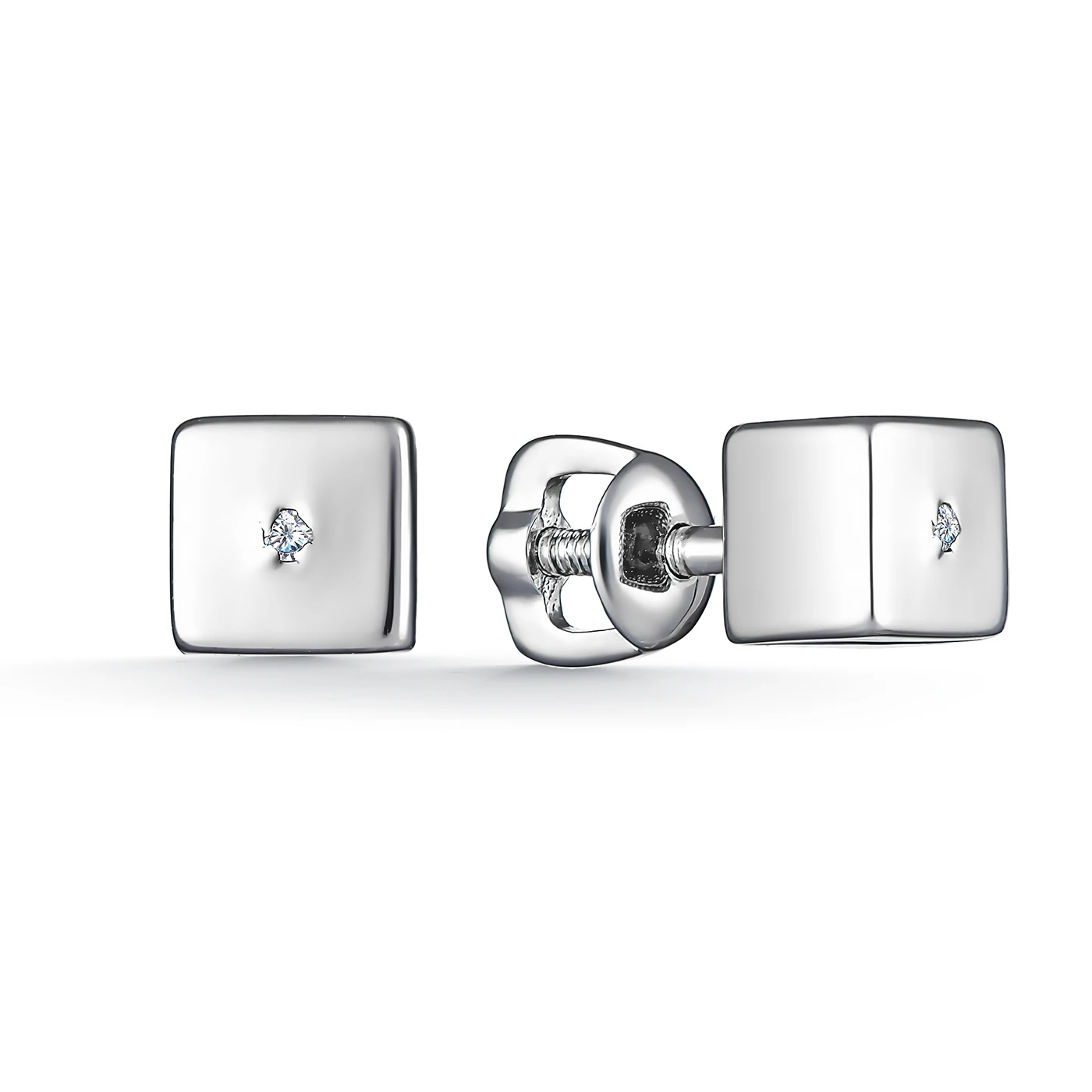 Женские серьги пусеты АЛЬКОР из родированного серебра 925 пробы с 2 бриллиантами. Вставка: 2 Бриллианта Круг 17 200-400 2/3А, карат. вес: 0,012. Ширина изделия: 5,3 мм. Средний вес: 2,06 гр.