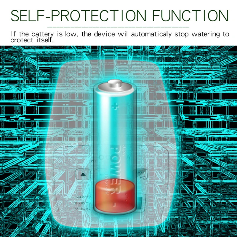 Когда мощность аккумулятора недостаточна, устройство автоматически прекратит полив, чтобы защитить себя;