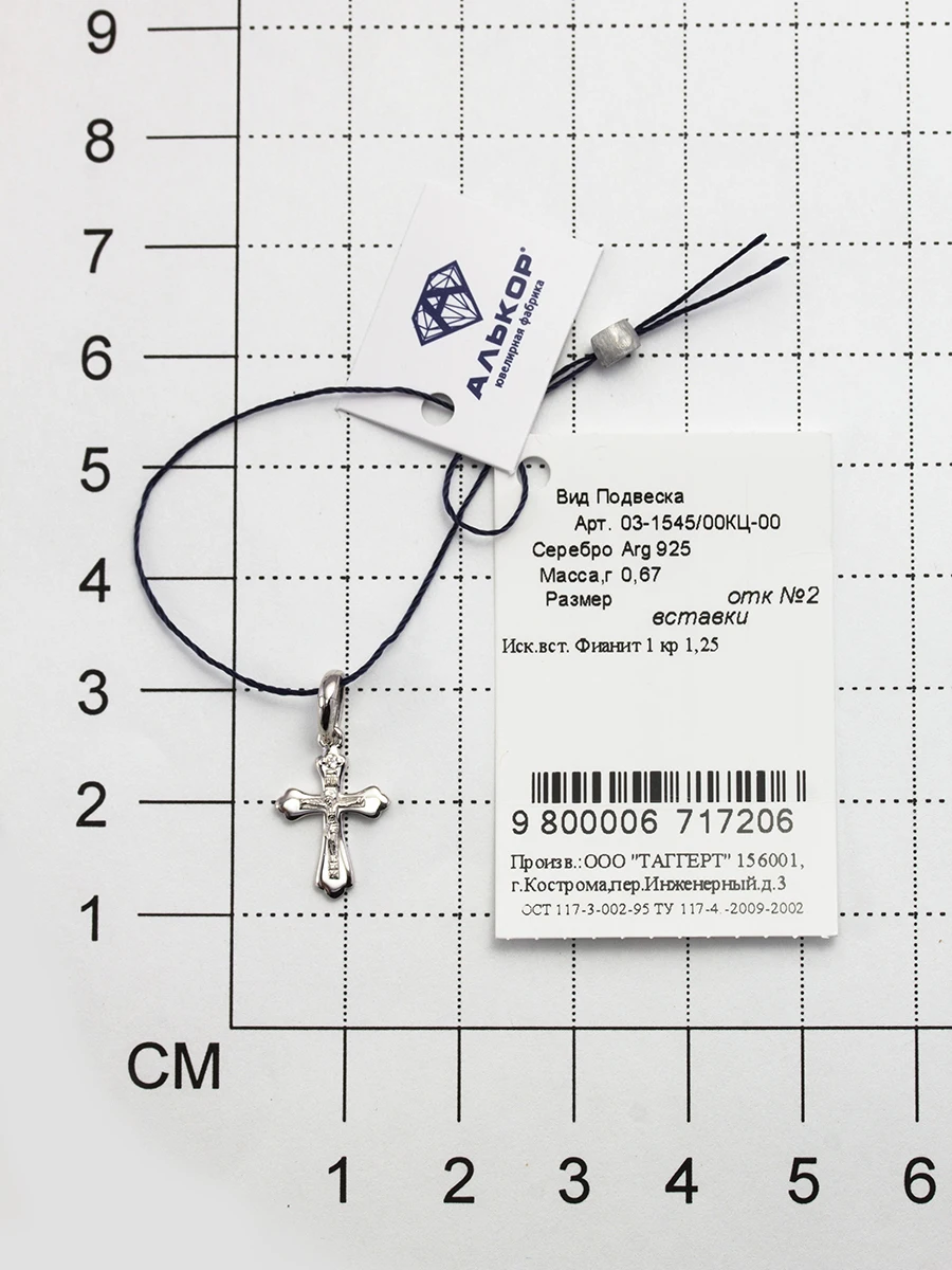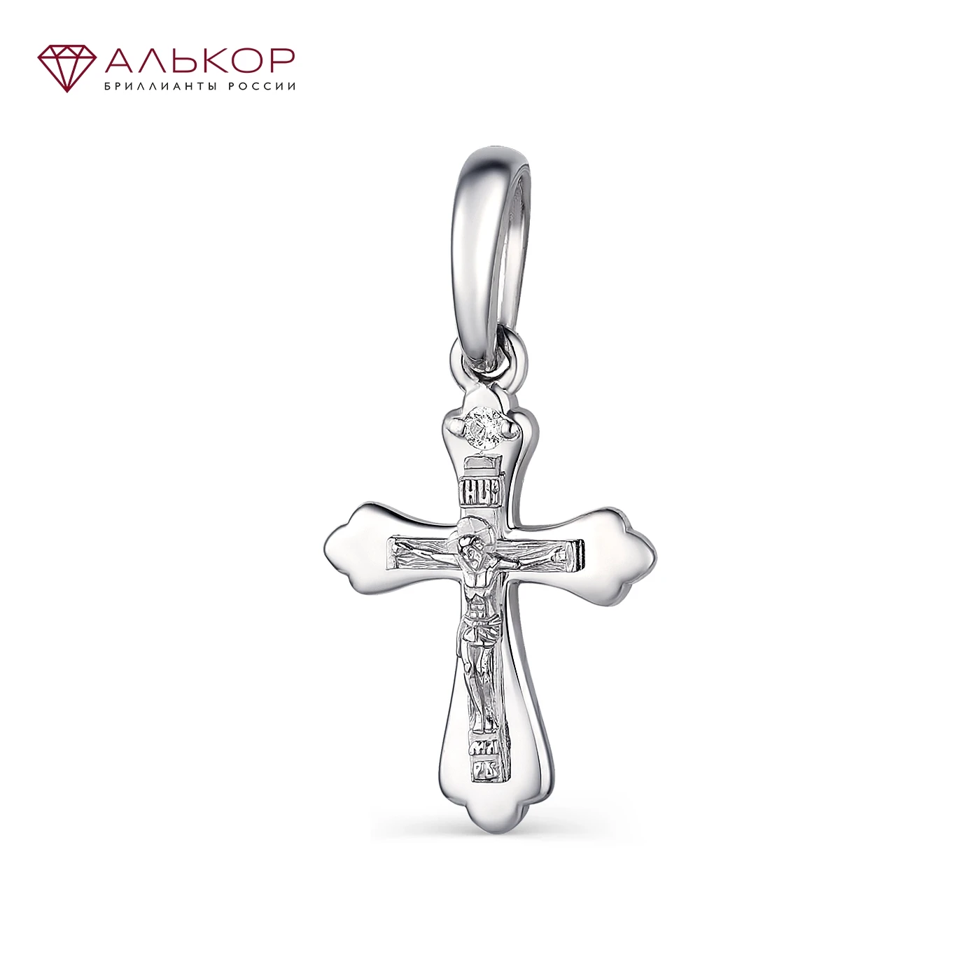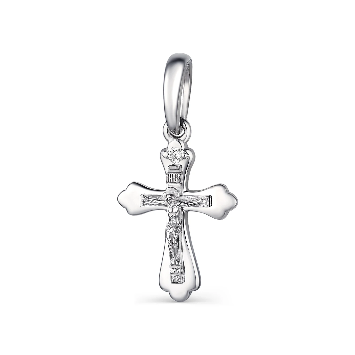 Женская подвеска тренд 2021 православный крест распятие из родированного серебра 925 пробы, фианит. Быстрая доставка из России