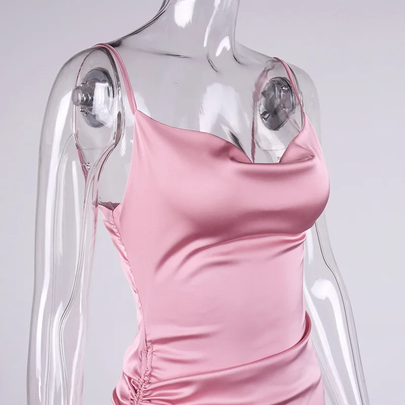 Женское атласное платье на бретелях-спагетти, розовое элегантное вечернее платье без рукавов, привлекательный сарафан на лето, 2021