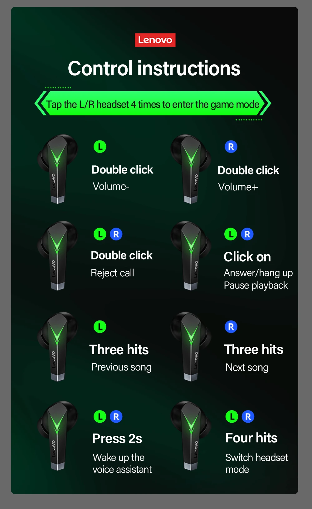 Игровая гарнитура Lenovo LP6 TWS, Bluetooth 5,0, наушники-вкладыши, игровые наушники с низкой задержкой, беспроводные наушники с объемным звуком, стерео
