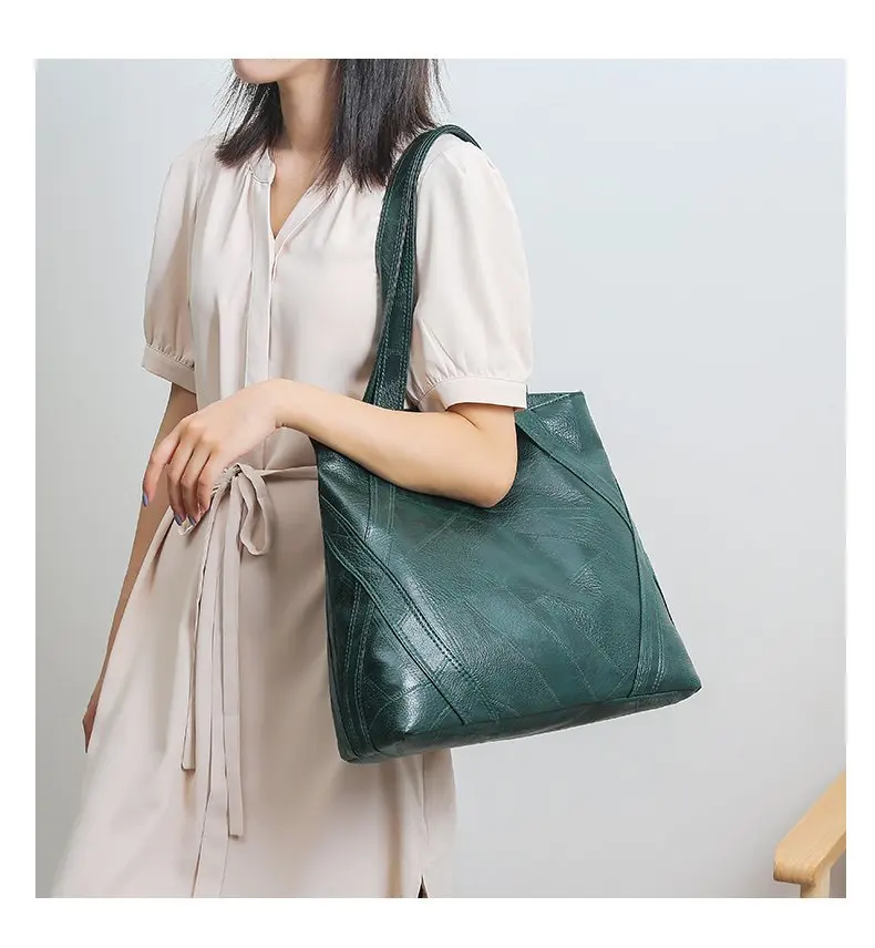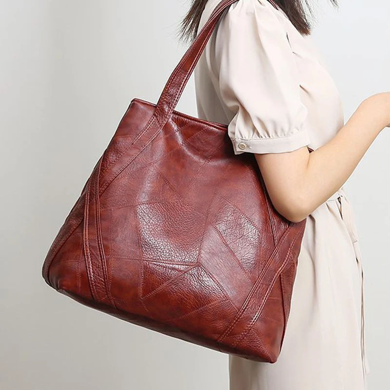 Большая Повседневная кожаная сумка-хобо в стиле ретро, с пэчворком,...