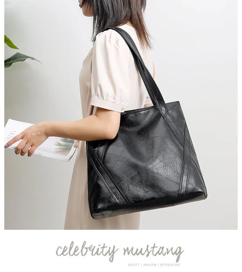 Мягкая сумка-тоут для женщин, Большая вместительная коричневая сумка через плечо, Сумки из искусственной кожи