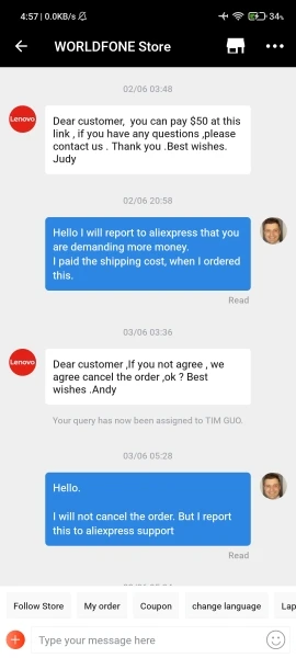 NEVER ORDER FROM THIS SELLER!!!! This seller is a cheater! I need paid extra fee 50USD. The laptop hasen't original windows 10 pro's licence. The battery threshold doesn't work. The seller lie.