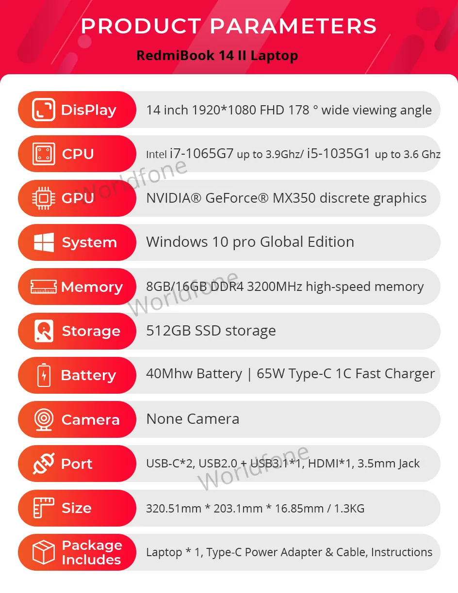 Оригинальный ноутбук Xiaomi RedmiBook 14 II Intel Core i7-1065G7i5-1035G1 NVIDIA MX350 8 ГБ16 ГБ DDR4 512 ГБ SSD ноутбук Windows 10Pro