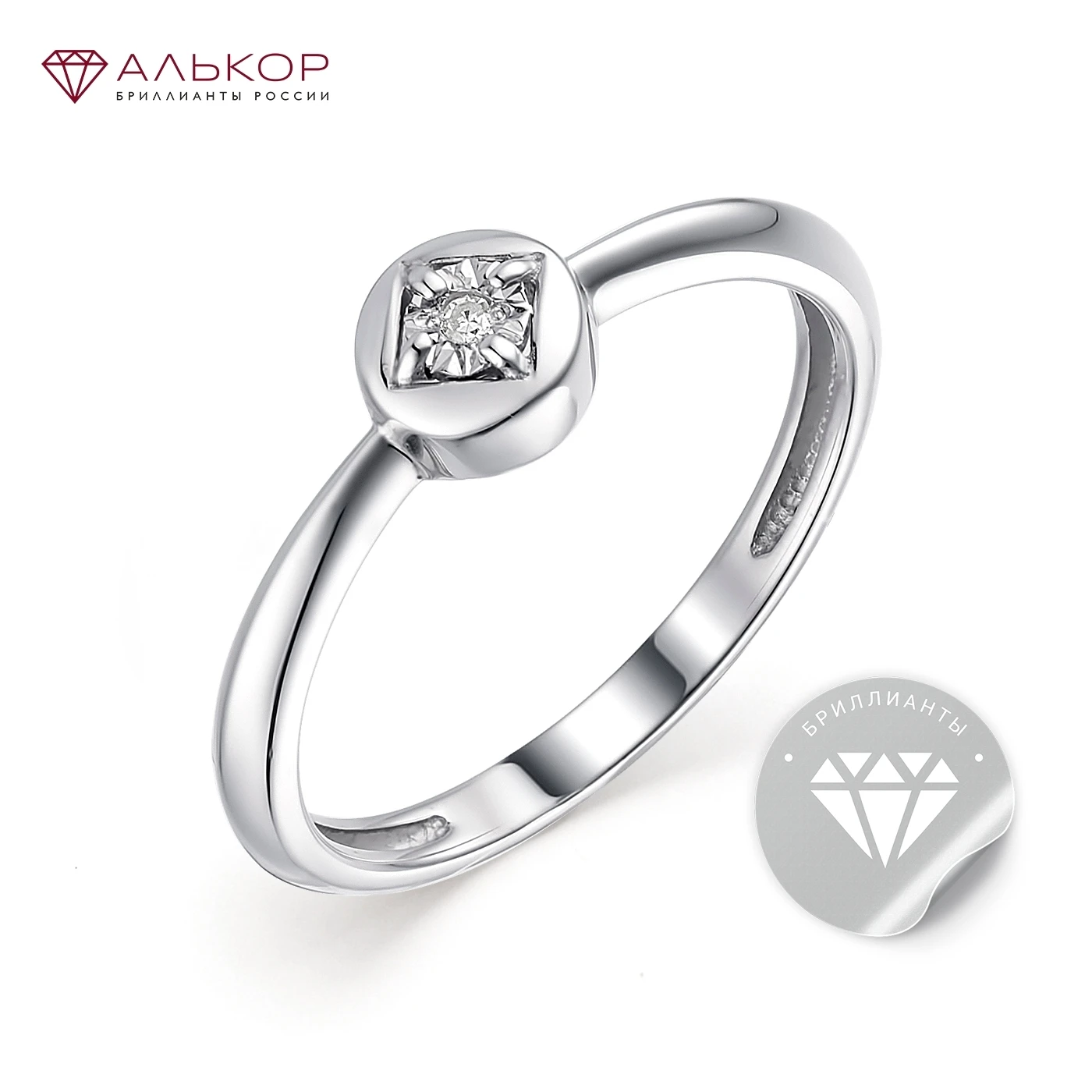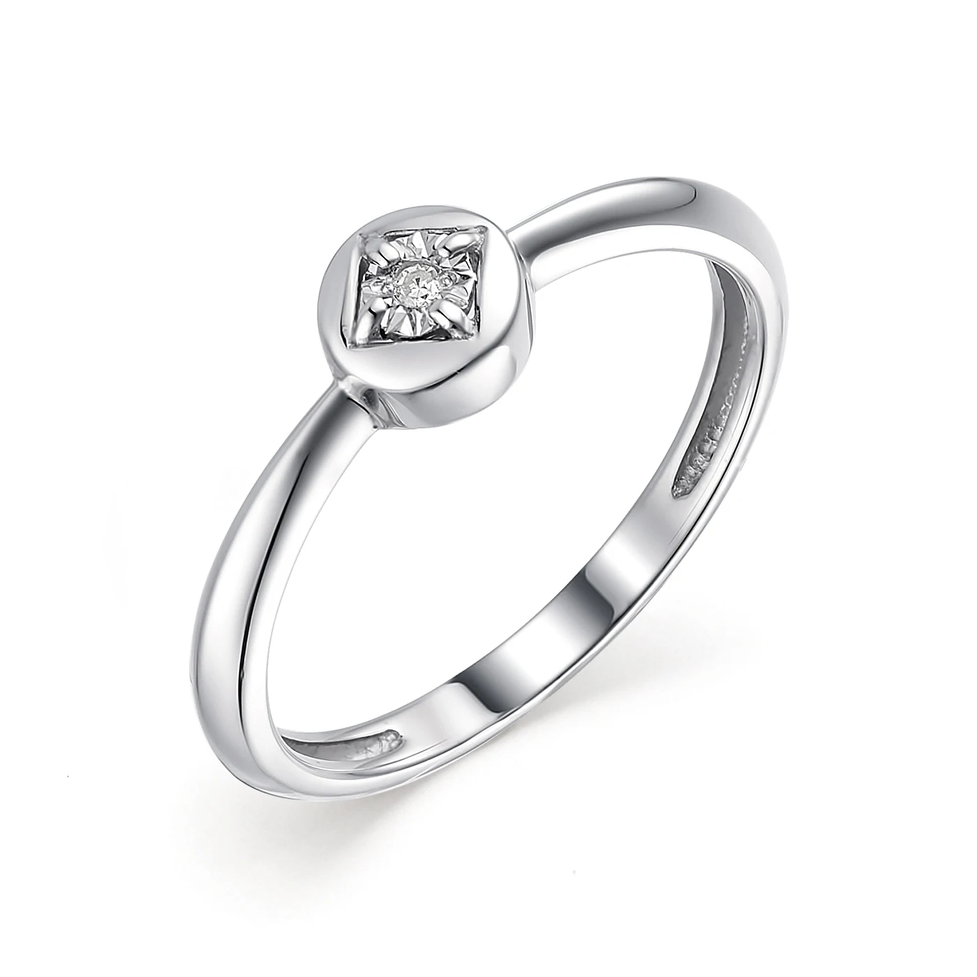 Женское кольцо со вставками АЛЬКОР из родированного серебра 925 пробы с 1 бриллиантом. Мы покрываем серебро слоем родия толщиной 0,4 мкм, чтобы драгоценный металл стал гипоаллергенным, получил благородный платиновый блеск и не потемнел. Вставка: 1 Бриллиант Круг 17 120-200 2/3А, карат. вес: 0,007. Ширина изделия: 5,7 мм. Средний вес: 1,73 гр.