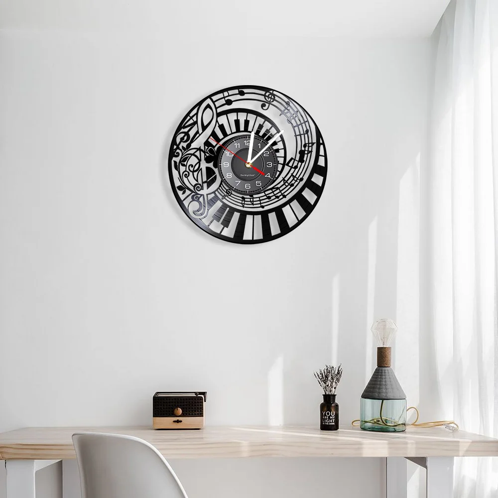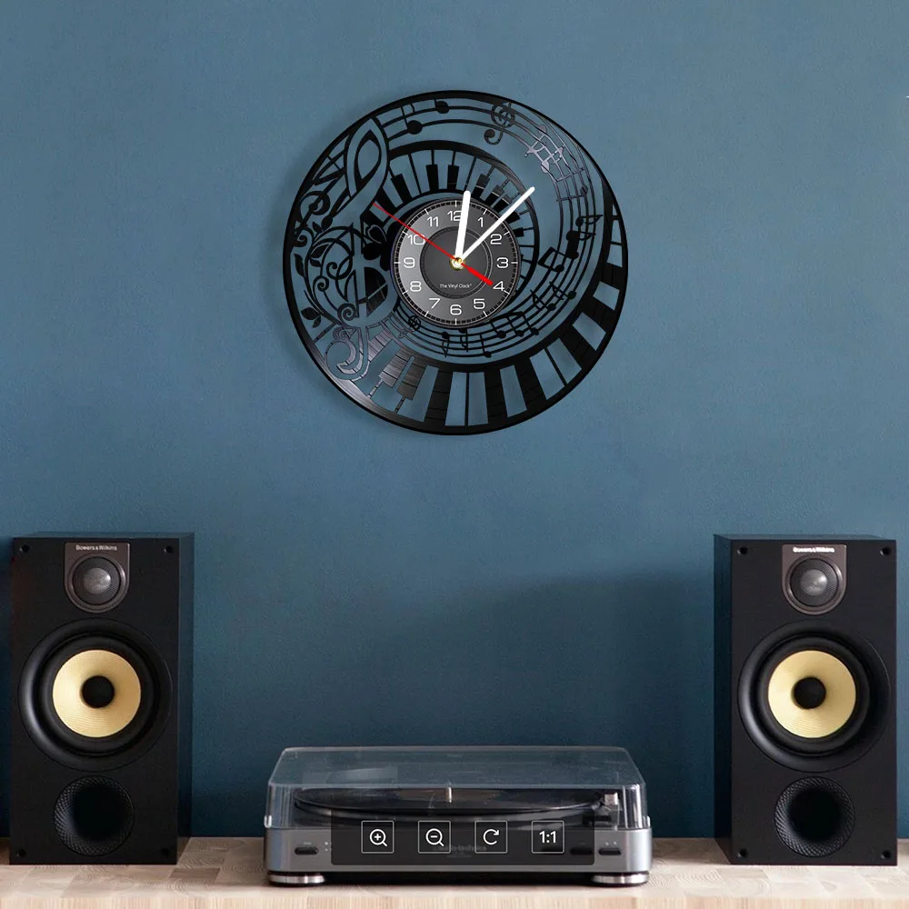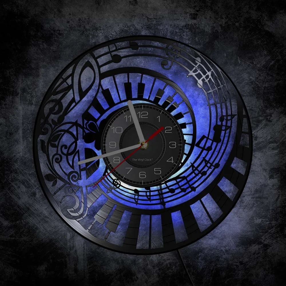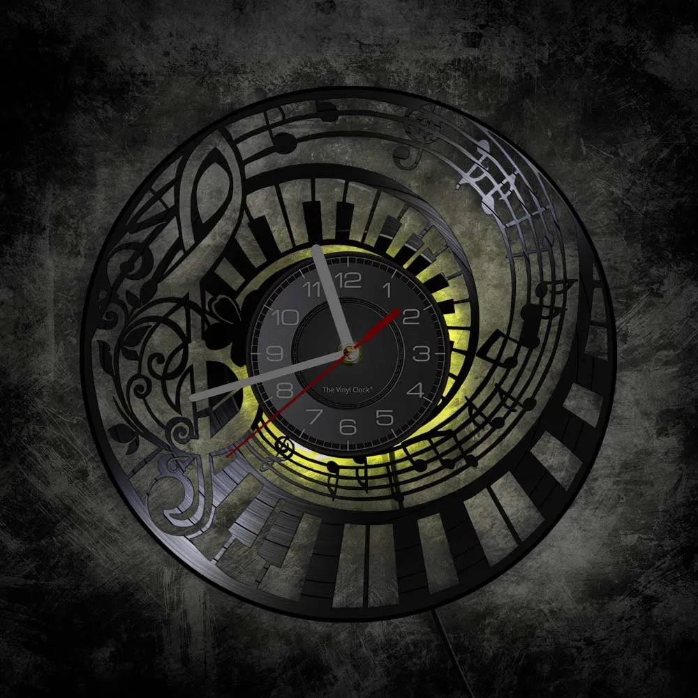 Настенные часы с скрипичным ключом, виниловые студийные Музыкальные часы с клавишами пианино, 7 цветов подсветки, в стиле ретро, музыка