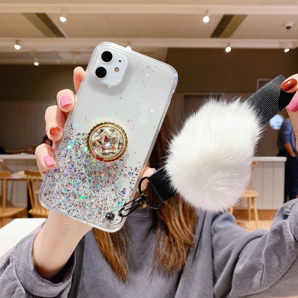 ХарактеристикиLuxury Diamond Cute Hair Ball Lanyard Soft Stand Back Cover