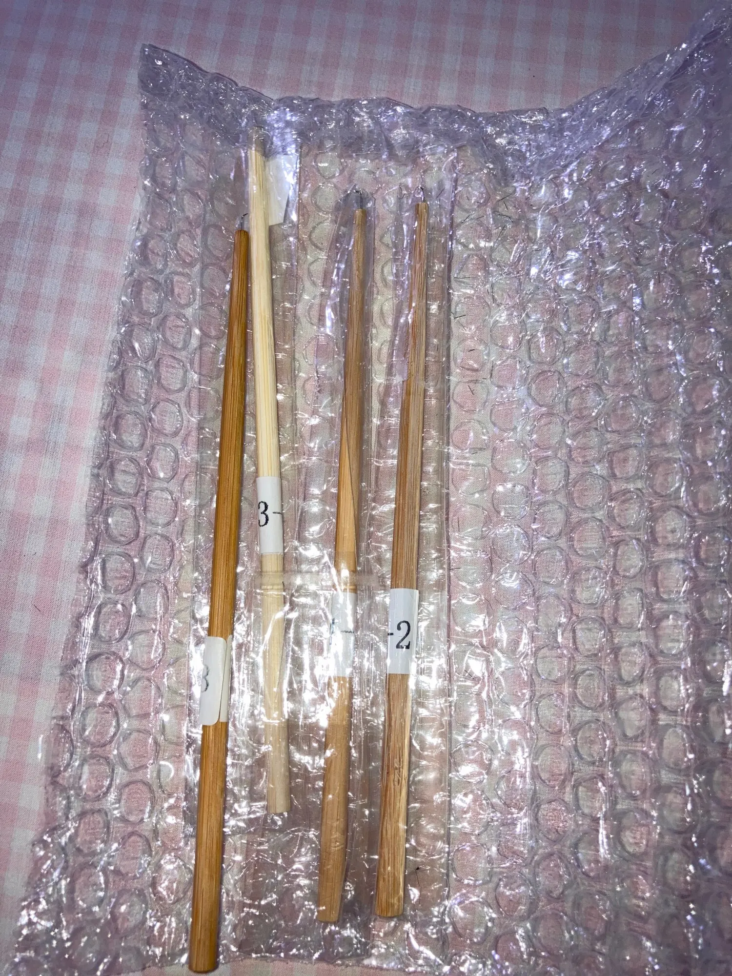 Не было бабе клопату, купіла парася.) Крючки примчались быстро, с продавцом не общалась. Ручки простенькие бамбуковые, но удобные по длине, не напрягают. Сами крючки в порядке полном, приехали в индивидуальных упаковках с наклейками с маркировкой, завёрнутые в пупырку. сразу маркером подписала номера на самих ручках, т.к. они без опознавательных знаков.