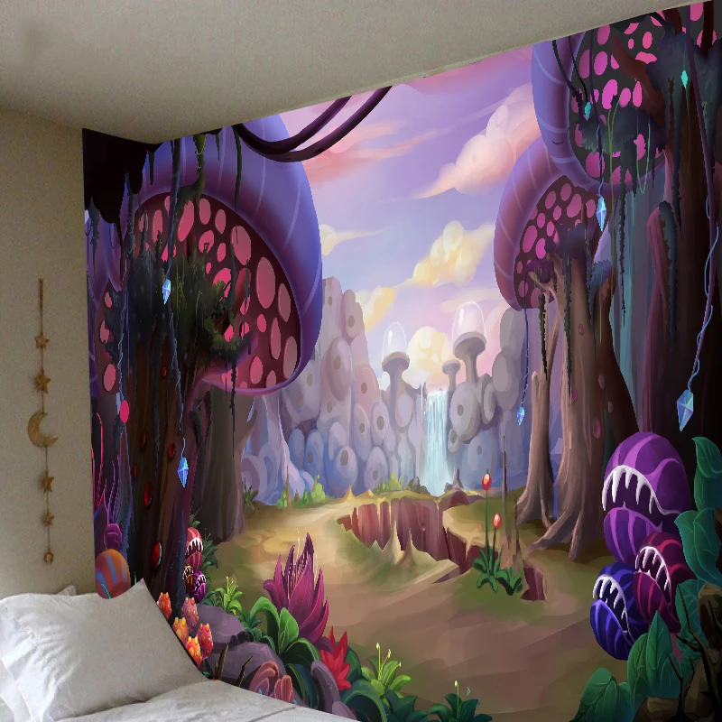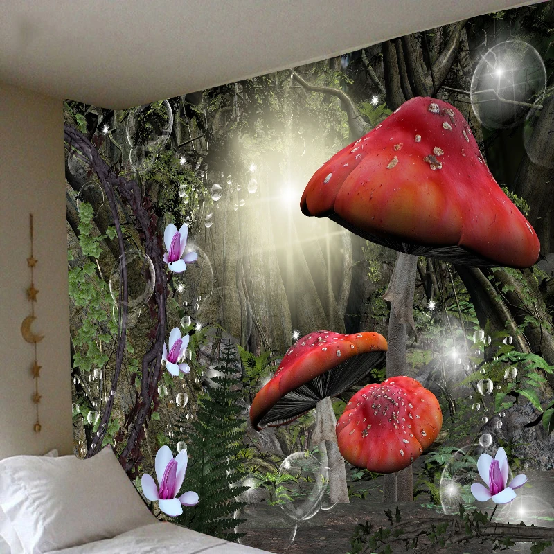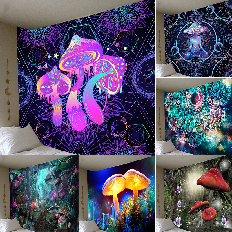 Психоделический настенный гобелен с грибами, гобелен, художественная мандала, Настенная подвесная ткань, ночное украшение, ковер, гобелены, потолочное украшение комнаты