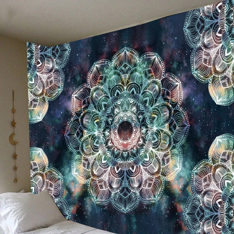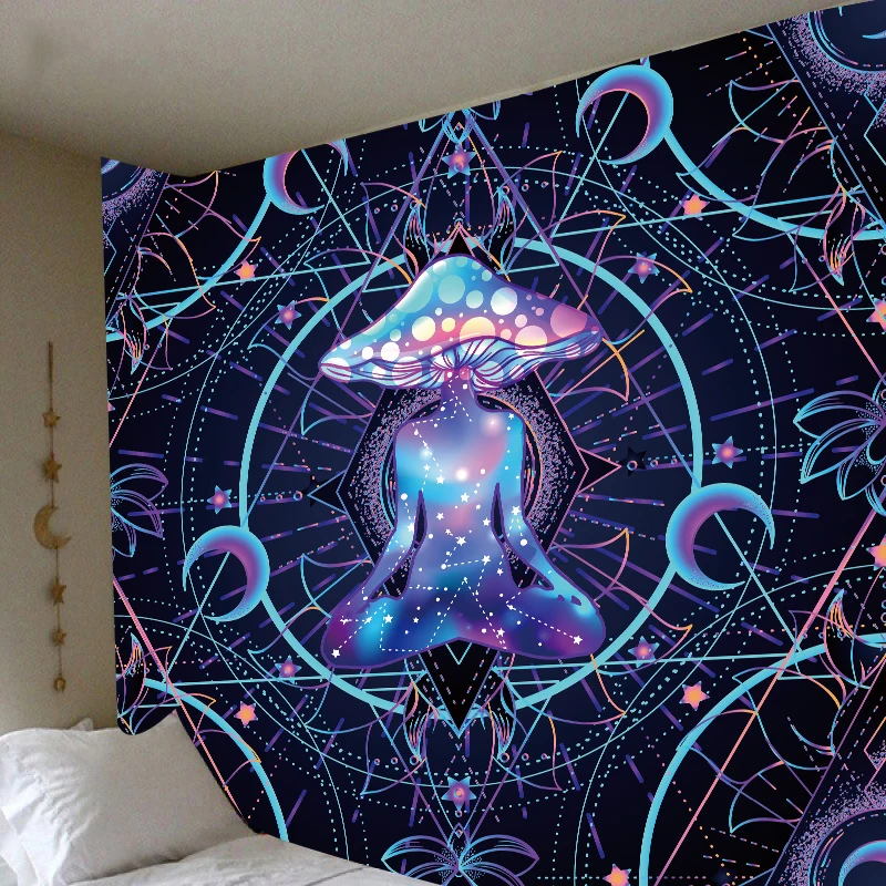 Гобелен настенный с изображением грибов, Луны и звезд, мандалы, психоделическая настенная ткань, ковер, гобелены, потолочное украшение для комнаты