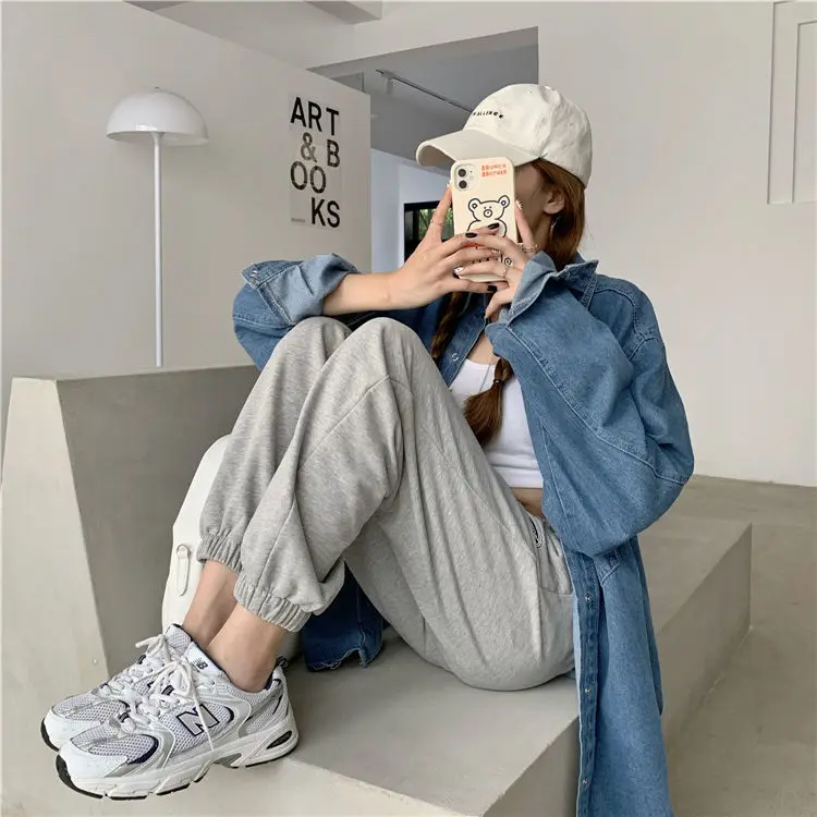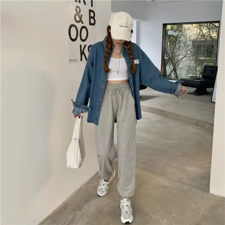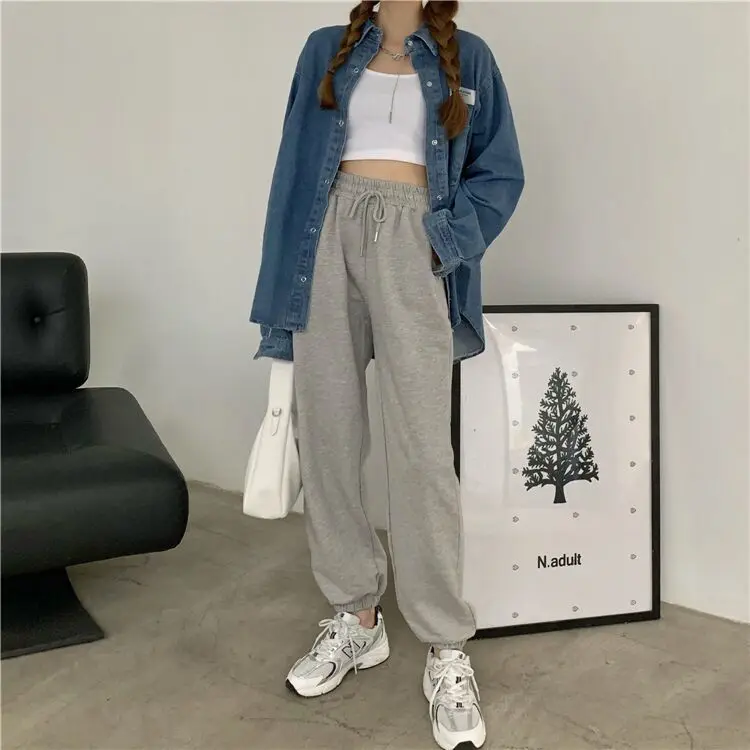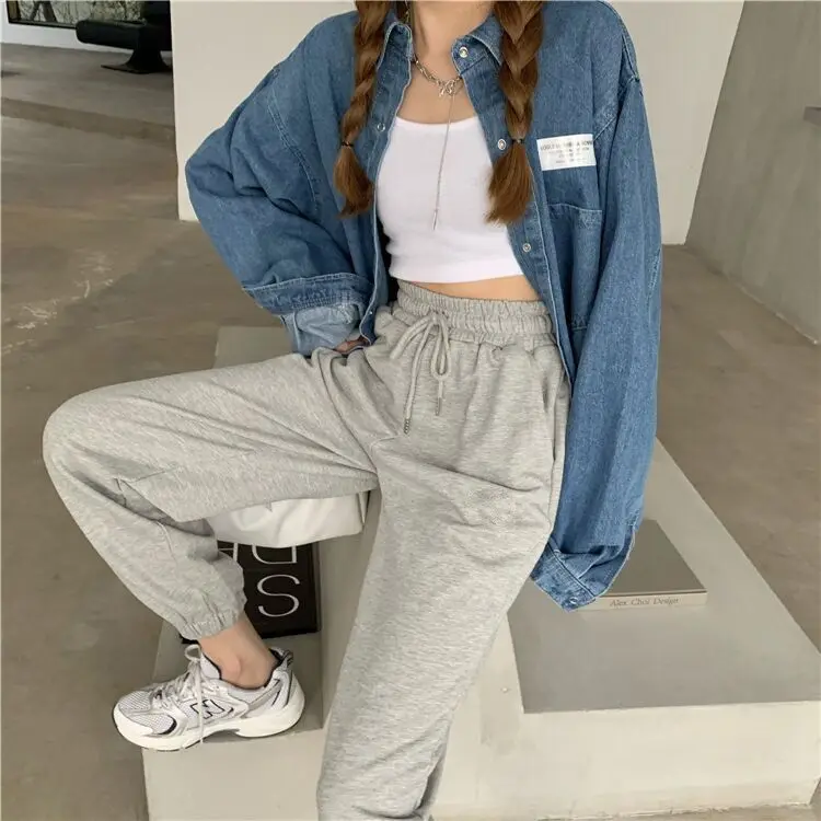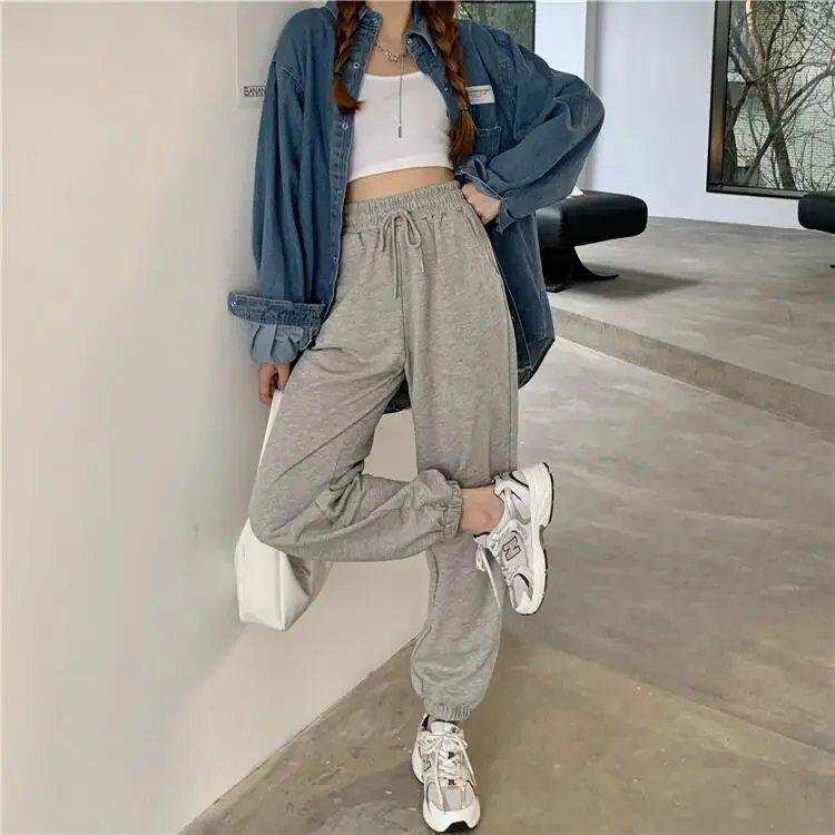 Брюки женские спортивные свободного покроя, мешковатые штаны для бега, в стиле оверсайз, спортивный костюм, размера плюс, серые, черные