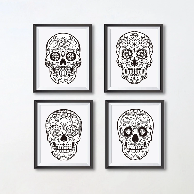 Мексиканский декоративный холст с изображением сахарного черепа, картина для стен