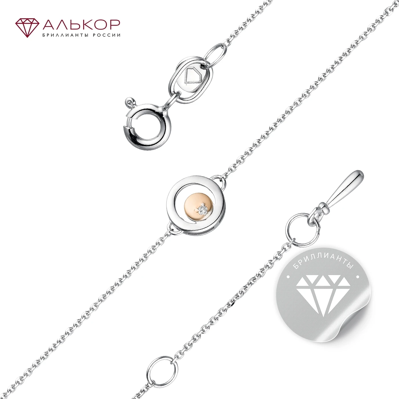 Колье тренд 2021 из родированного серебра c фианитами АЛЬКОР. Быстр...