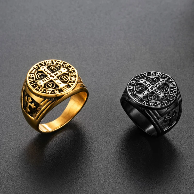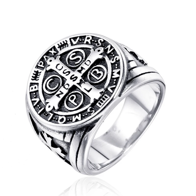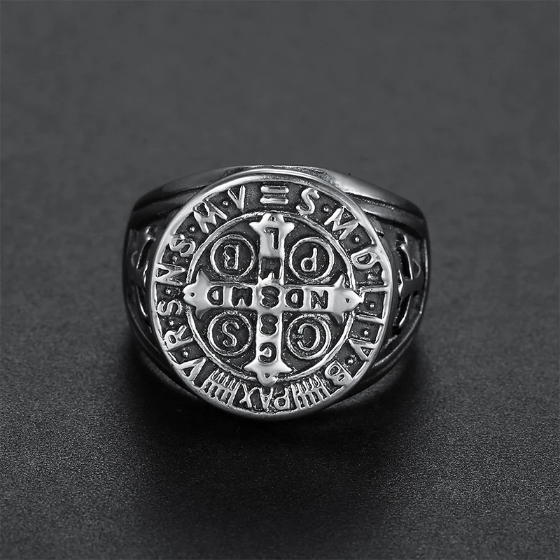 Винтажное мужское кольцо с крестом Святого Бенедикта CSPB из нержавеющей стали в стиле хип-хоп