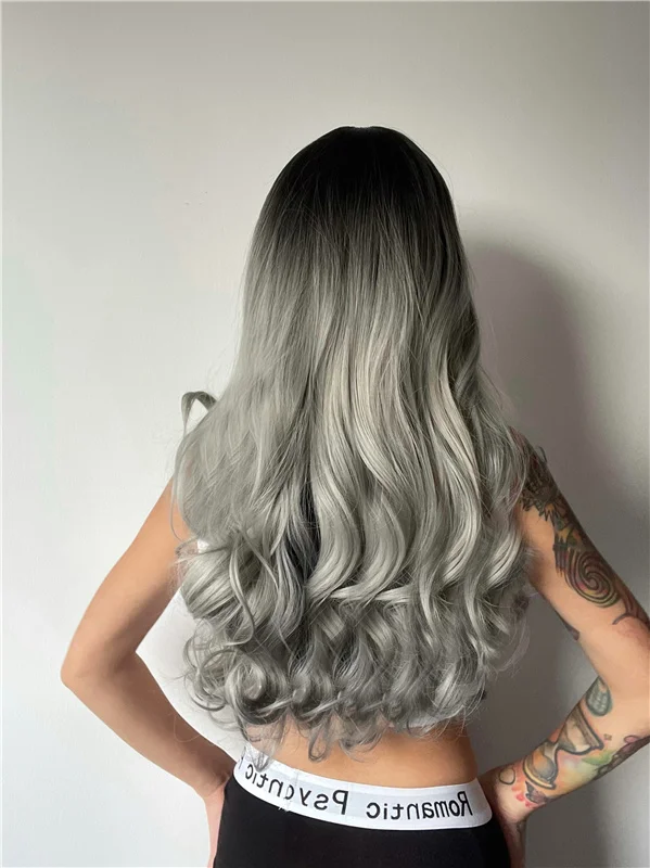 Светлый Единорог, Синтетические длинные волнистые темные корни, Омб...